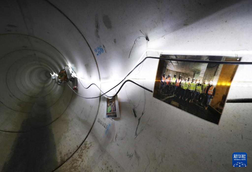 这是4月25日在法国巴黎奥斯特利茨火车站附近的储水库输水管道内拍摄的工作人员合影照片。新华社记者 高静 摄