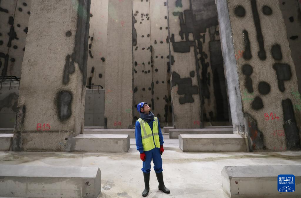 4月25日,在法国巴黎奥斯特利茨火车站附近的储水库,工程总负责人萨穆埃尔·科林-卡尼韦查看施工情况。新华社记者 高静 摄
