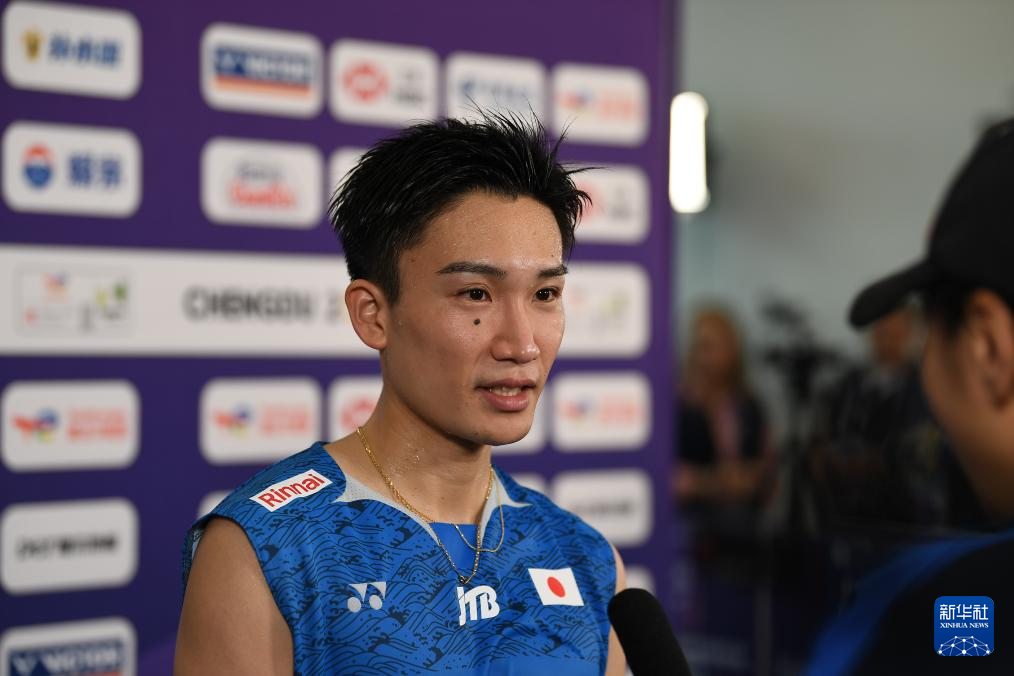 4月28日,日本队选手桃田贤斗在男单比赛后接受采访。他2比0战胜捷克队选手科普日瓦。新华社记者 侯昭康 摄