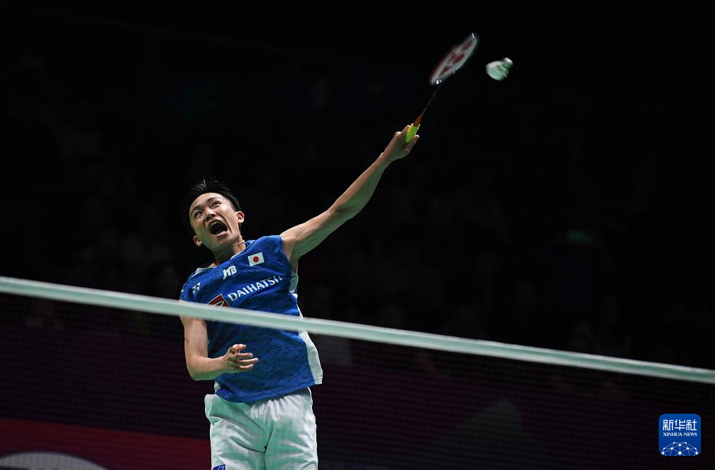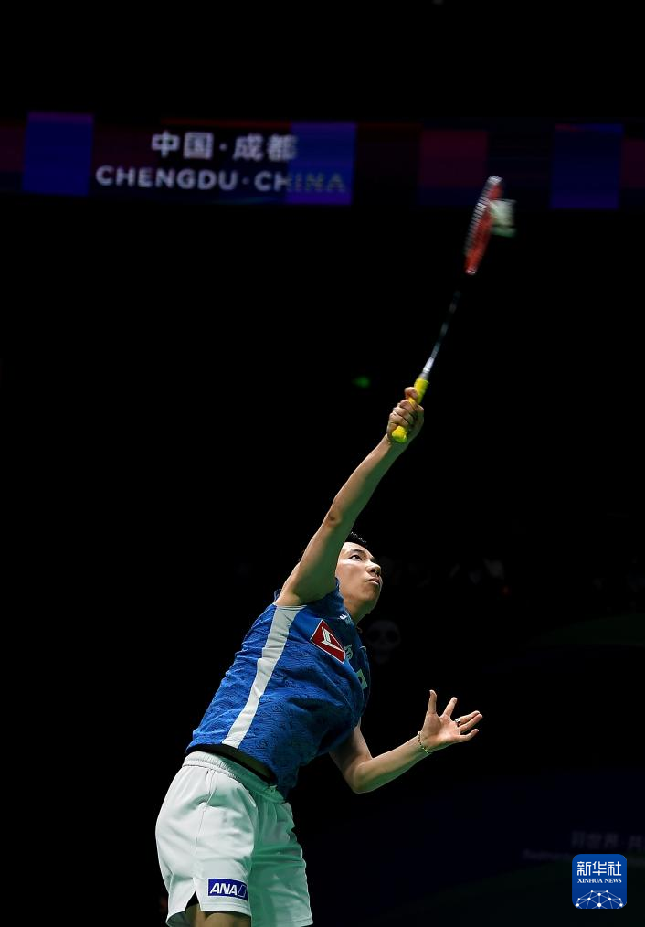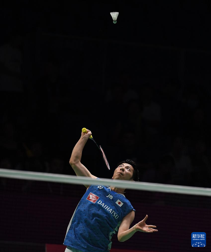 4月28日,日本队选手桃田贤斗在男单比赛中回球。他2比0战胜捷克队选手科普日瓦。新华社记者 侯昭康 摄