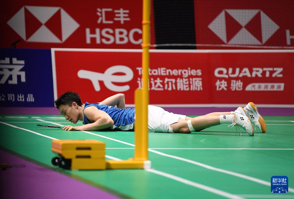 4月28日,日本队选手桃田贤斗在男单比赛中倒地。他2比0战胜捷克队选手科普日瓦。新华社记者 侯昭康 摄
