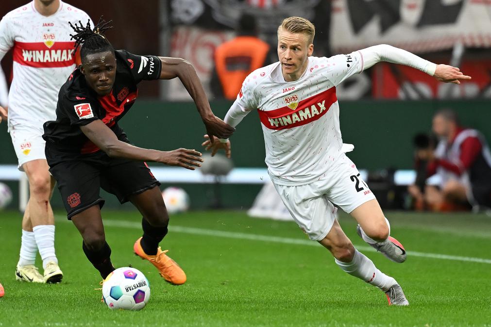 4粒进球全部来自下半场。第47分钟和第57分钟,“药厂”连丢两球,客队球员弗里希和翁达夫相继破门。第62分钟,格里马尔多助攻阿德利射门得分,主队扳回一城。格里马尔多本赛季已经贡献联盟最多的13次助攻。第96分钟,安德里希绝境建功,扳平比分,为勒沃库森延续不败纪录。勒沃库森是德甲历史上第一支连续31场德甲比赛不败的球队。斯图加特在积分榜位居第三。