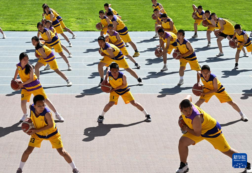 4月28日,学生在开幕式上进行篮球项目表演。新华社记者 陈朔 摄