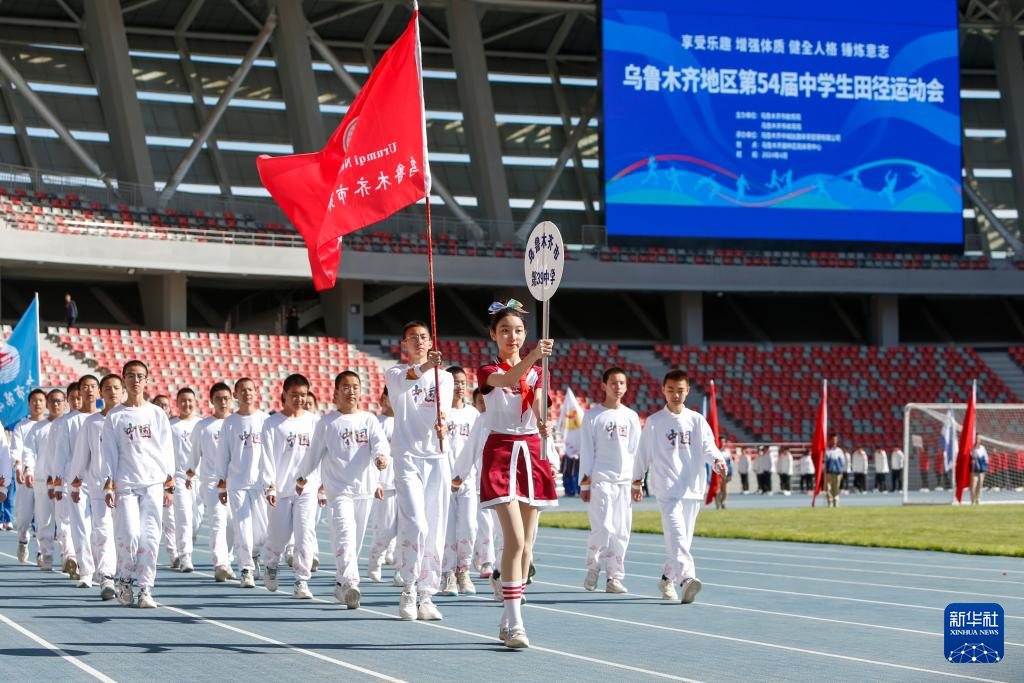 当日,新疆乌鲁木齐地区第54届中学生田径运动会在乌鲁木齐奥体中心运动场开幕,来自94所中学的2100余名运动员参加比赛。