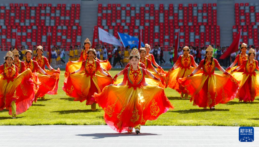4月28日,学生在开幕式上表演民族舞蹈。新华社记者 陈朔 摄