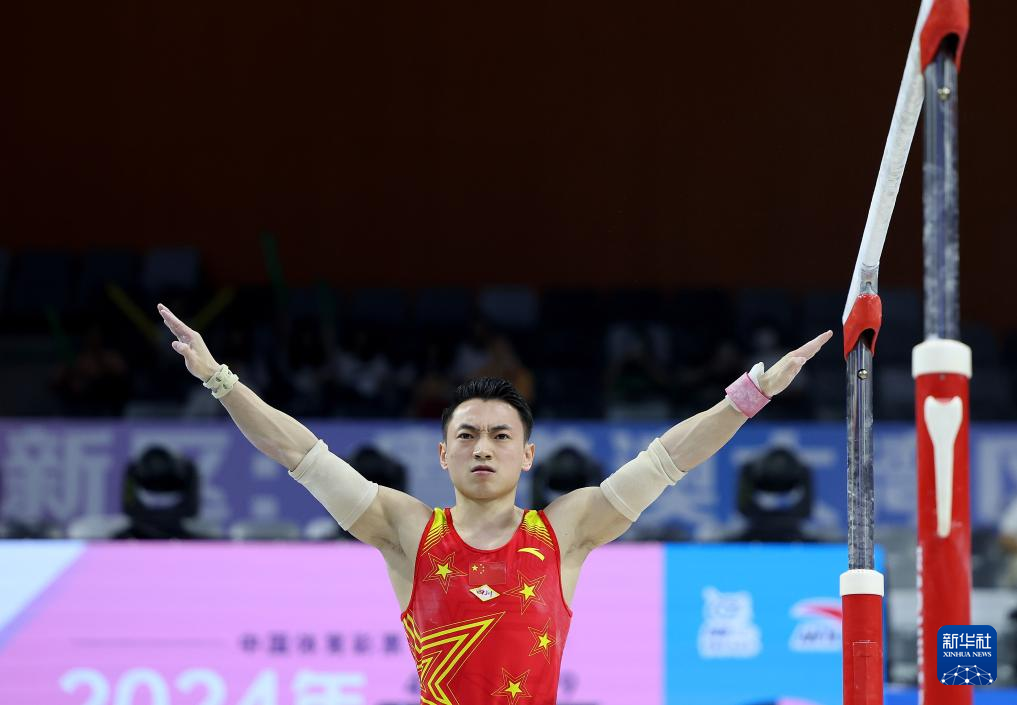 当日,在广东肇庆举行的2024年全国体操锦标赛暨巴黎奥运会选拔赛男子双杠比赛中,四川队选手邹敬园以16.166分的成绩夺得冠军,江苏队选手尤浩与广西队选手胡旭威分获亚军和季军。