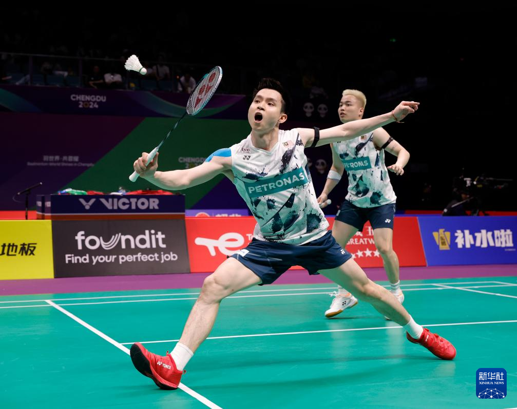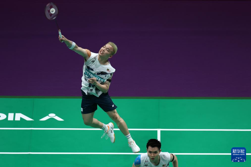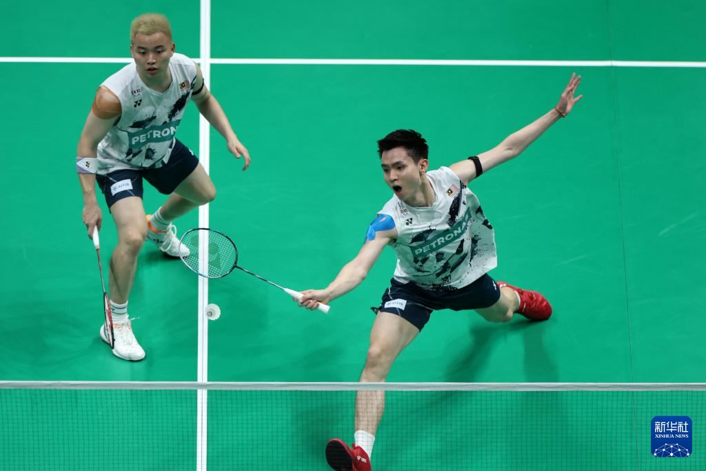 4月30日,马来西亚队组合谢定峰/苏伟译(左)在男子双打比赛中。最终,他们2比1战胜丹麦队组合阿斯特鲁普/拉斯姆森。新华社记者 沈伯韩 摄