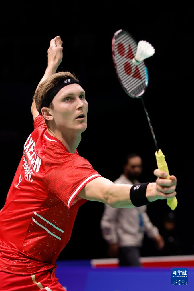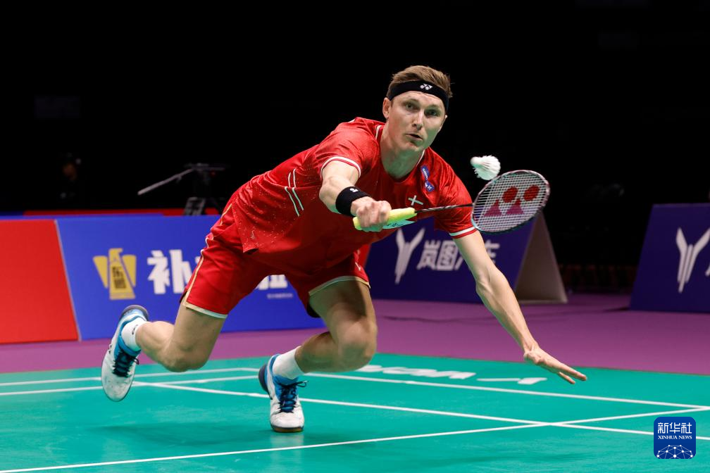 4月30日,丹麦队选手安赛龙在男子单打比赛中回球。最终,他2比0战胜马来西亚队选手李梓嘉。新华社记者 沈伯韩 摄