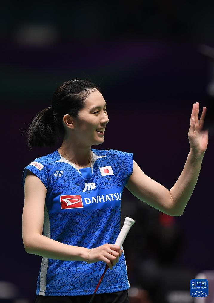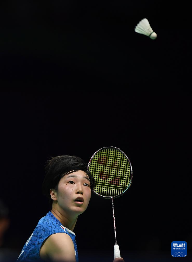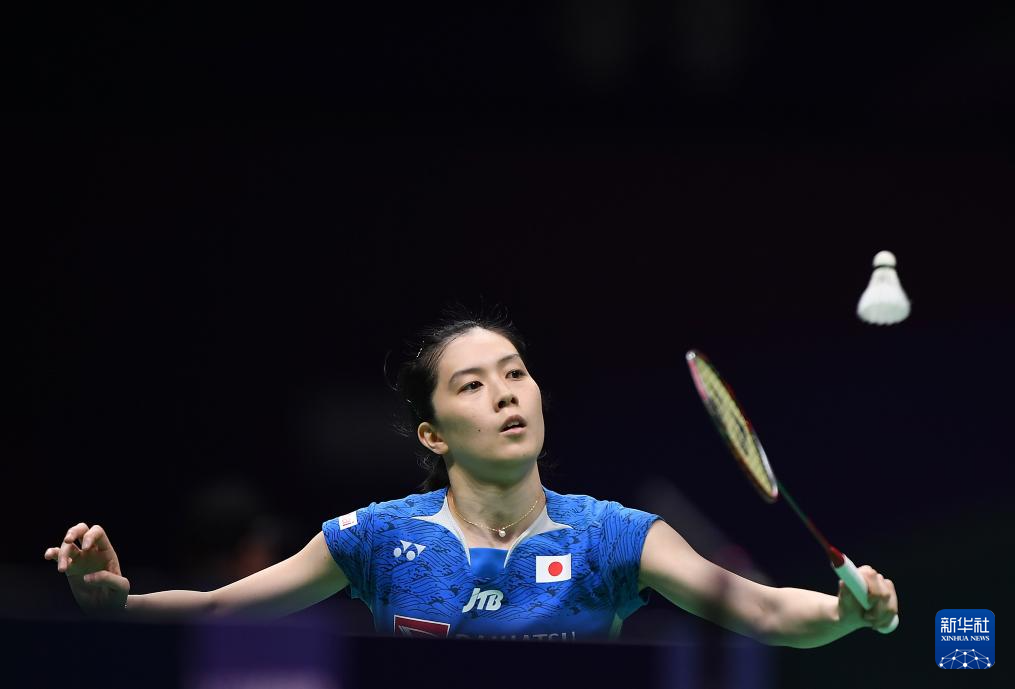 5月1日,日本队选手山口茜在女单比赛中回球。她1比2不敌印度尼西亚队选手玛丽斯卡。新华社记者 侯昭康 摄