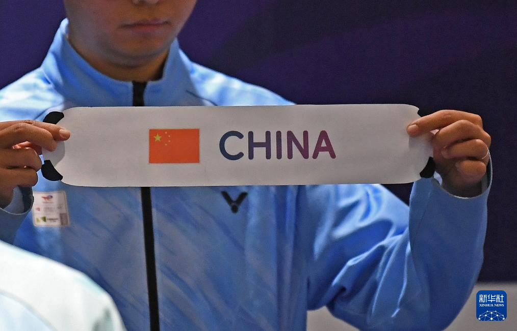 5月1日,工作人员在淘汰赛抽签仪式上展示中国队的签条。新华社记者 侯昭康 摄