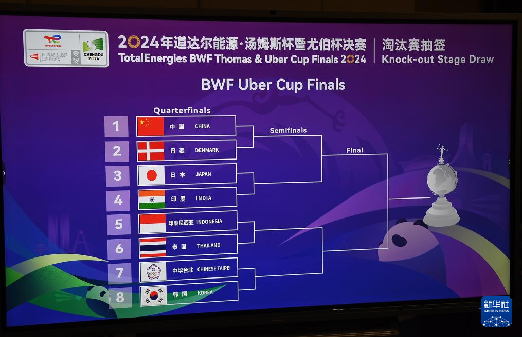 当日,2024年尤伯杯羽毛球团体赛淘汰赛抽签仪式在四川成都举行,中国队将在四分之一决赛中对阵丹麦队。