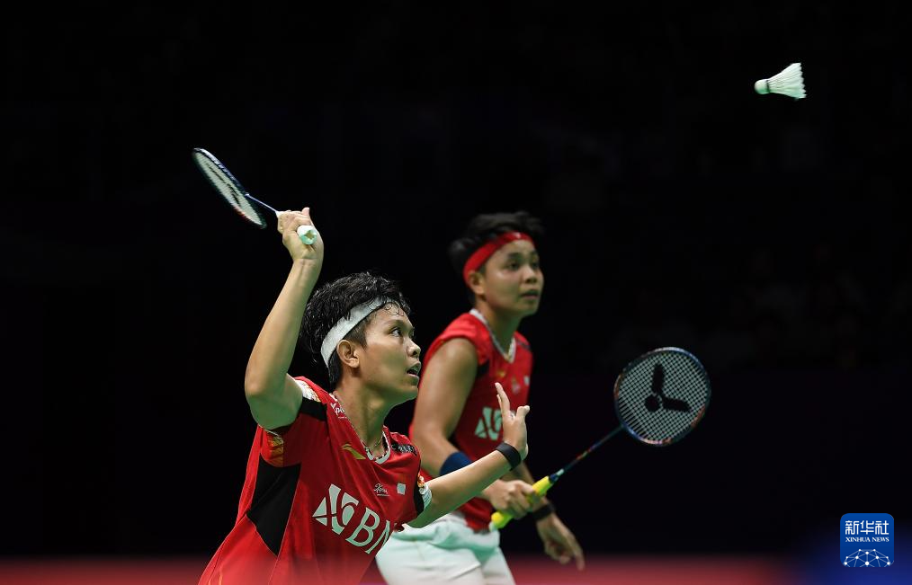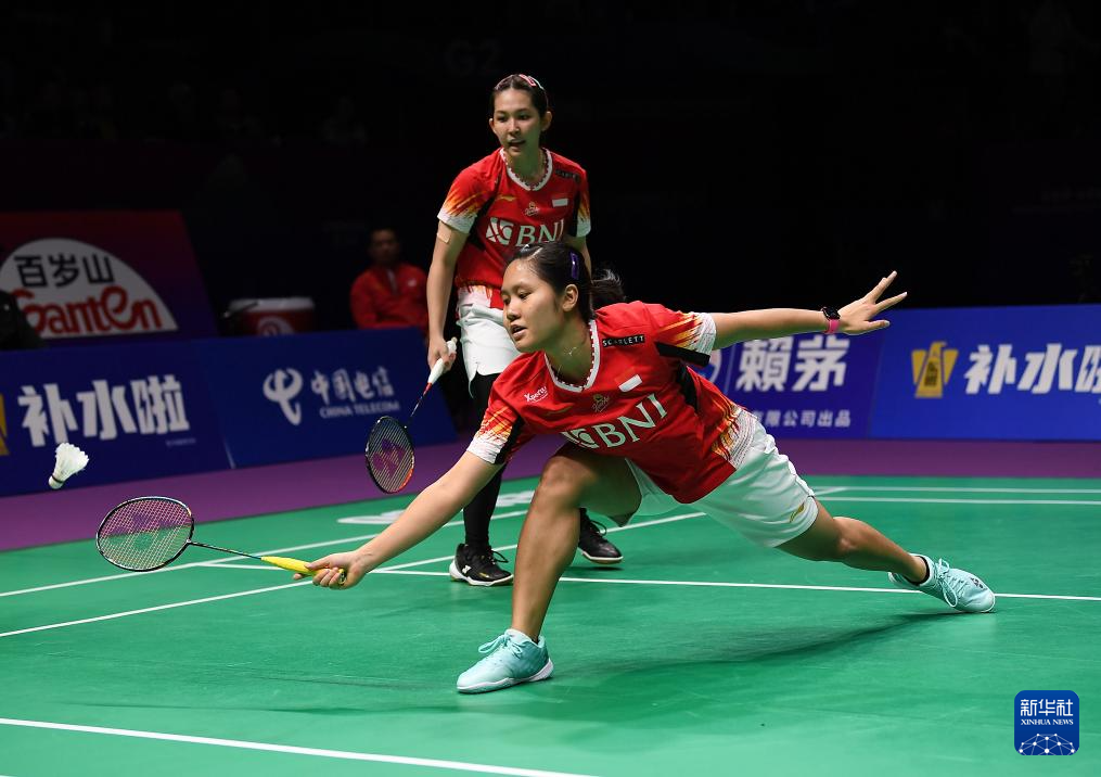 5月4日,印度尼西亚队组合拉哈尤/拉马丹蒂(左)在女双比赛中。她们0比2不敌韩国队组合白荷娜/李绍希。新华社记者 侯昭康 摄