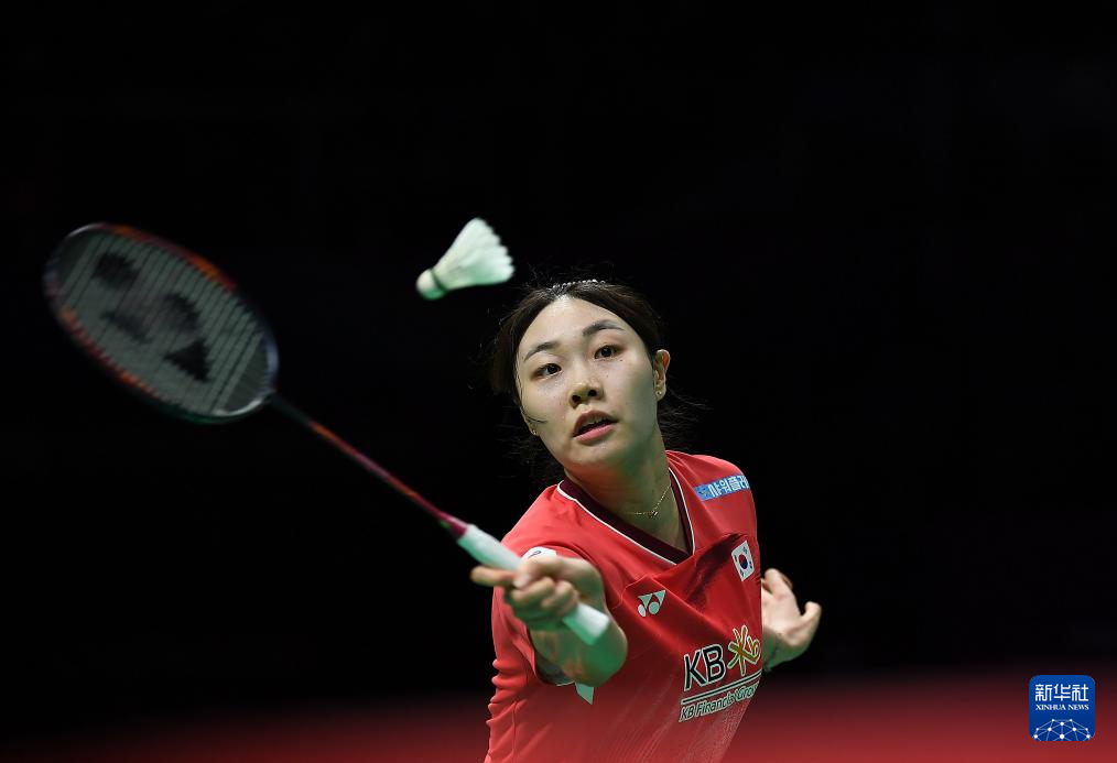 5月4日,韩国队选手金佳蓝在女单比赛中回球。她1比2不敌印度尼西亚队选手瓦多约。新华社记者 侯昭康 摄