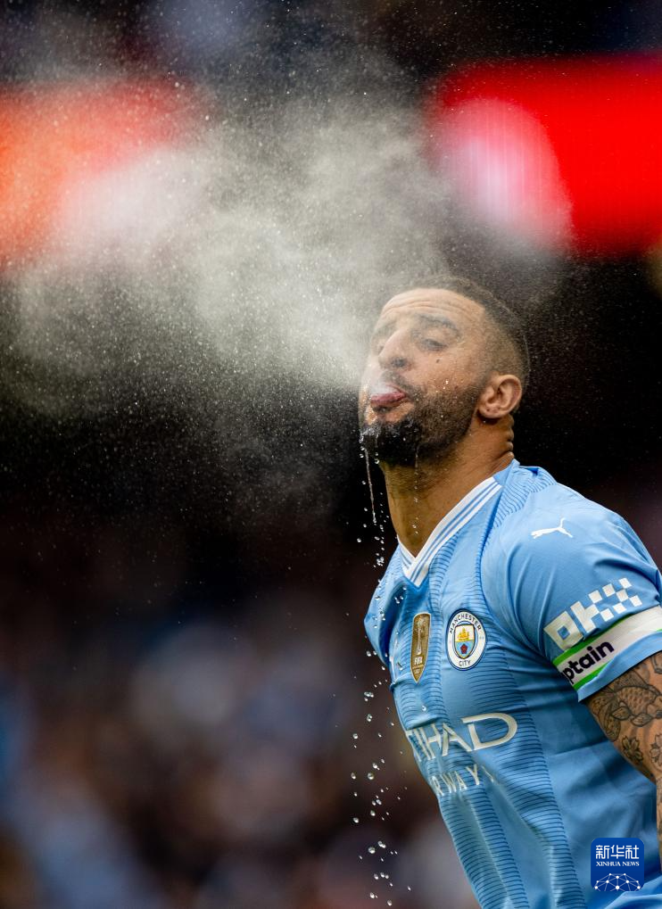 5月4日,曼彻斯特城队球员沃克在比赛前。新华社发