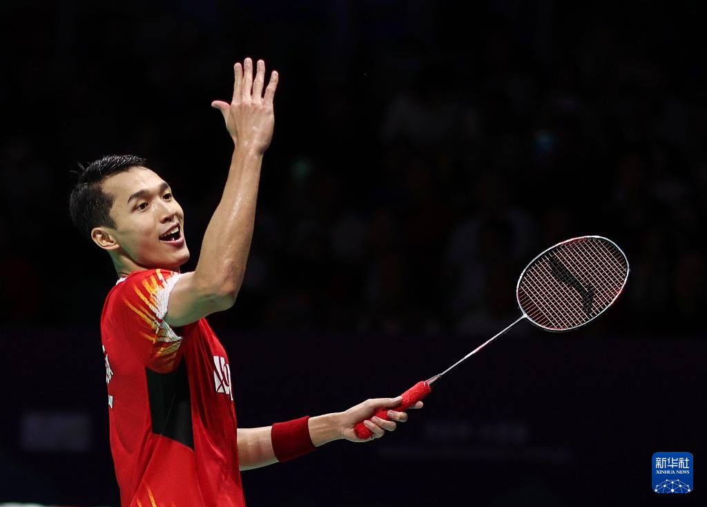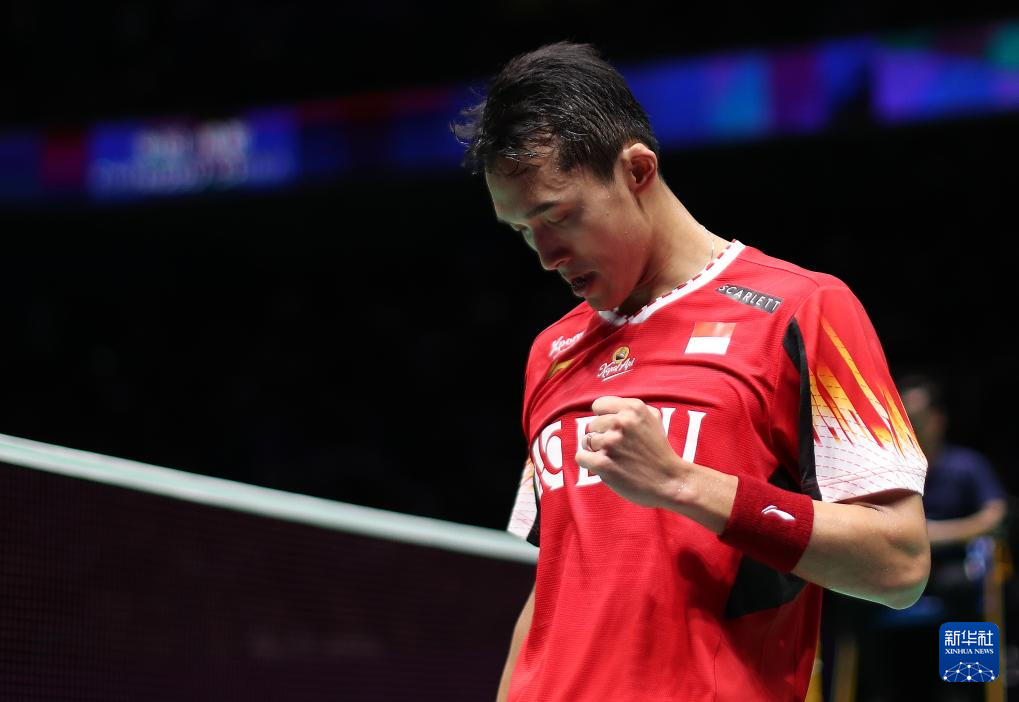 5月4日,印度尼西亚队选手乔纳坦在男子单打比赛中。他2比0战胜中国台北队选手王子维。新华社记者 贾浩成 摄