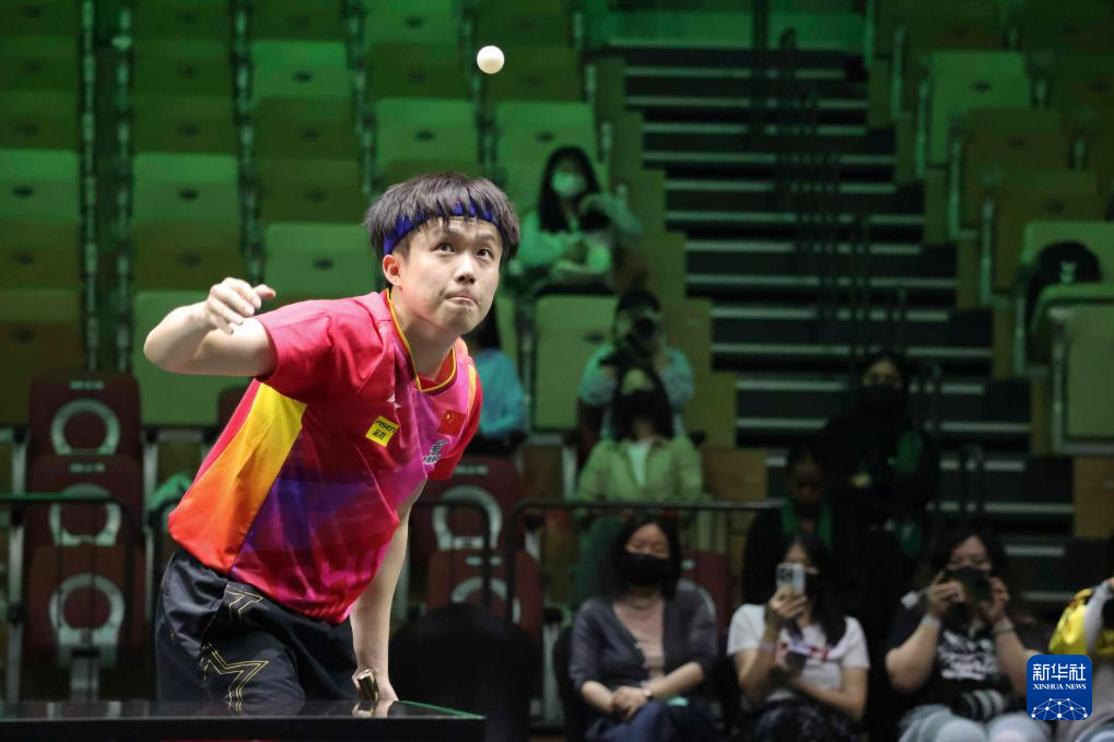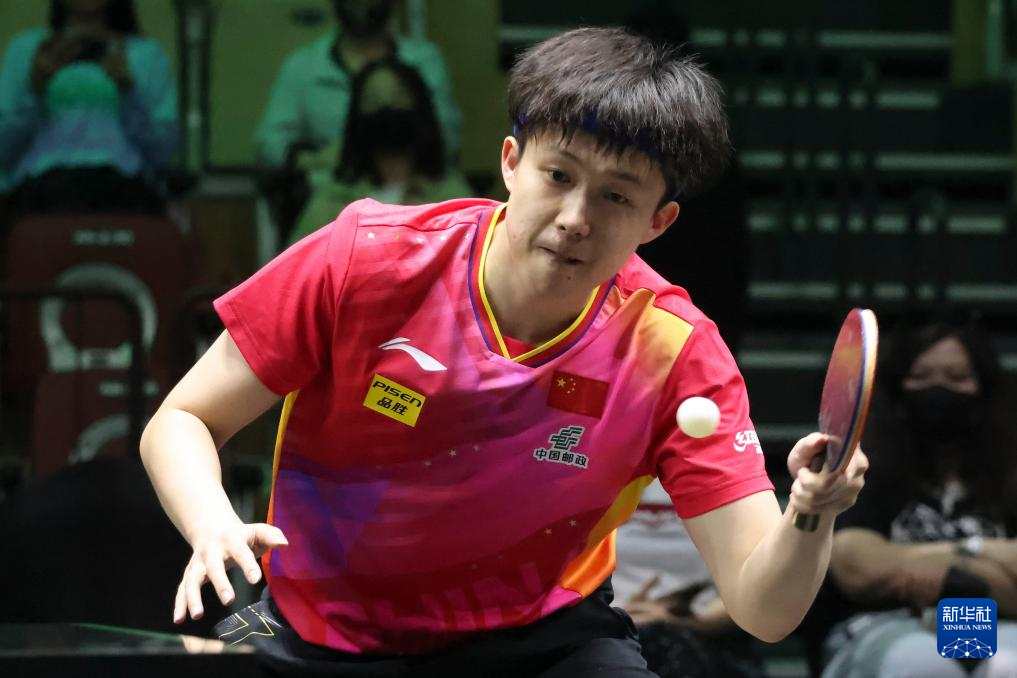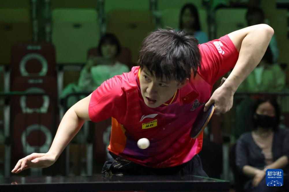 5月4日,中国选手王楚钦在比赛中。新华社记者 王海洲 摄