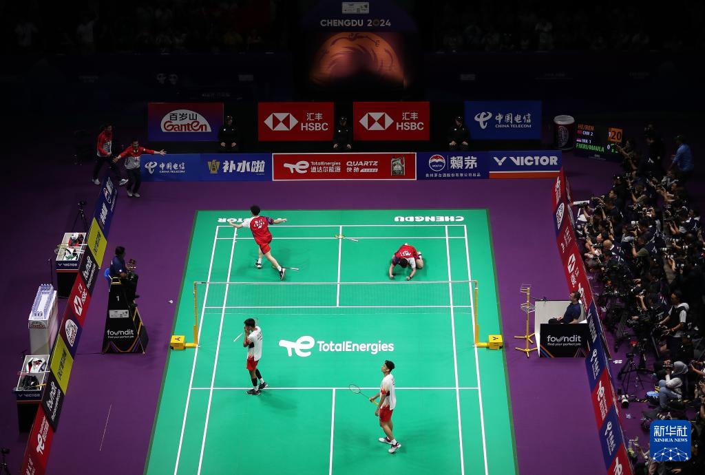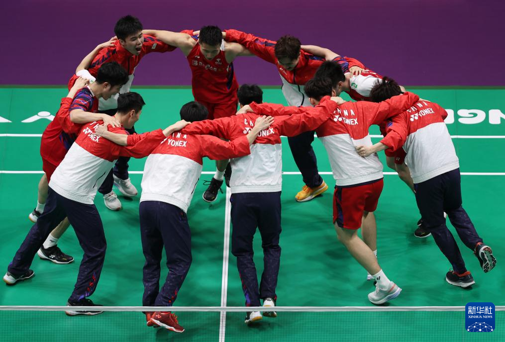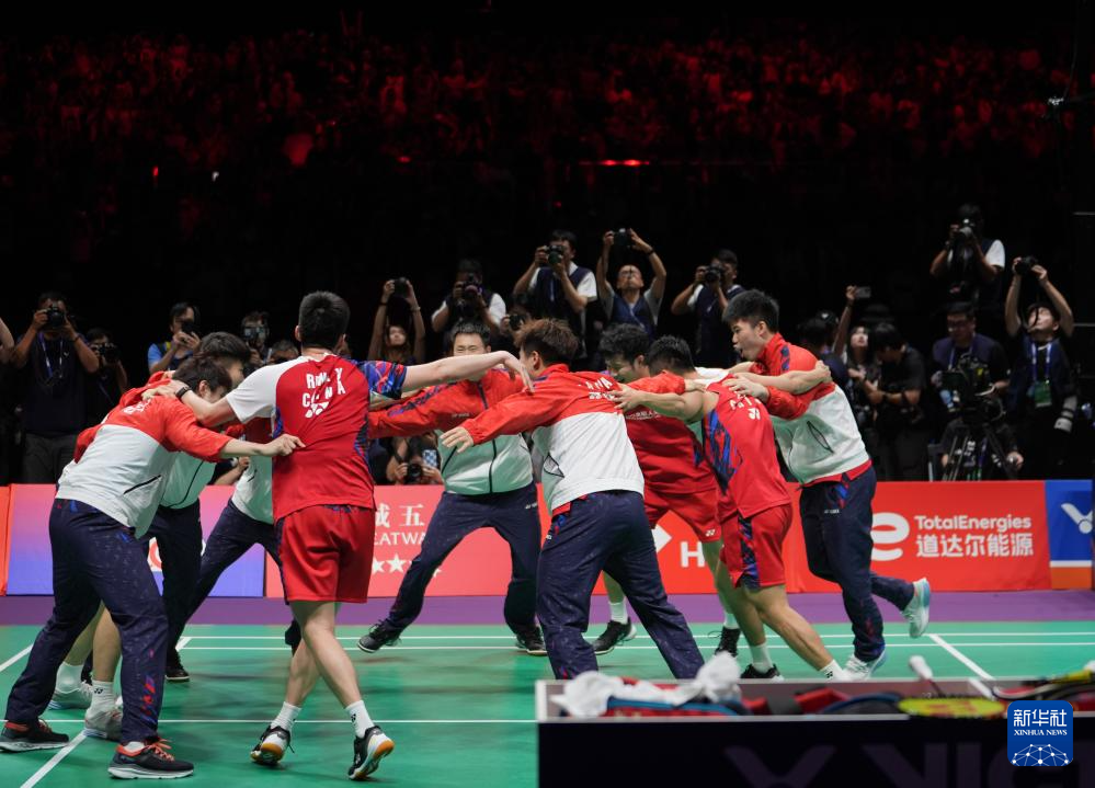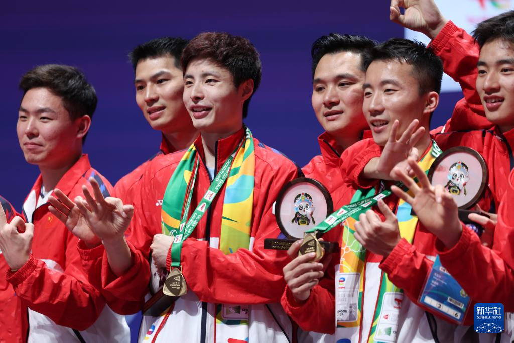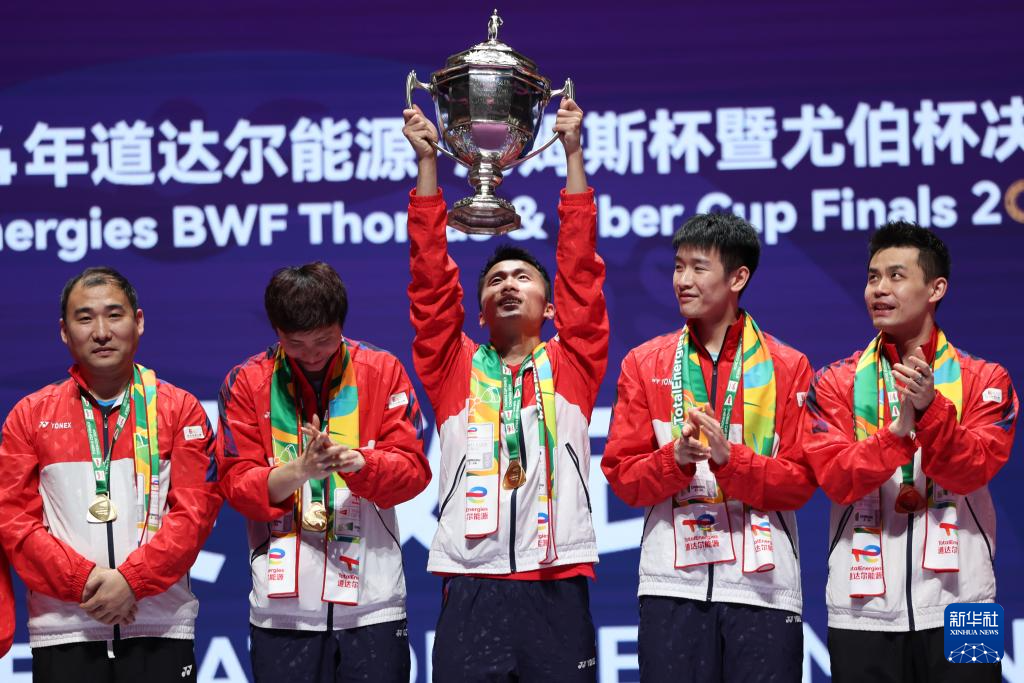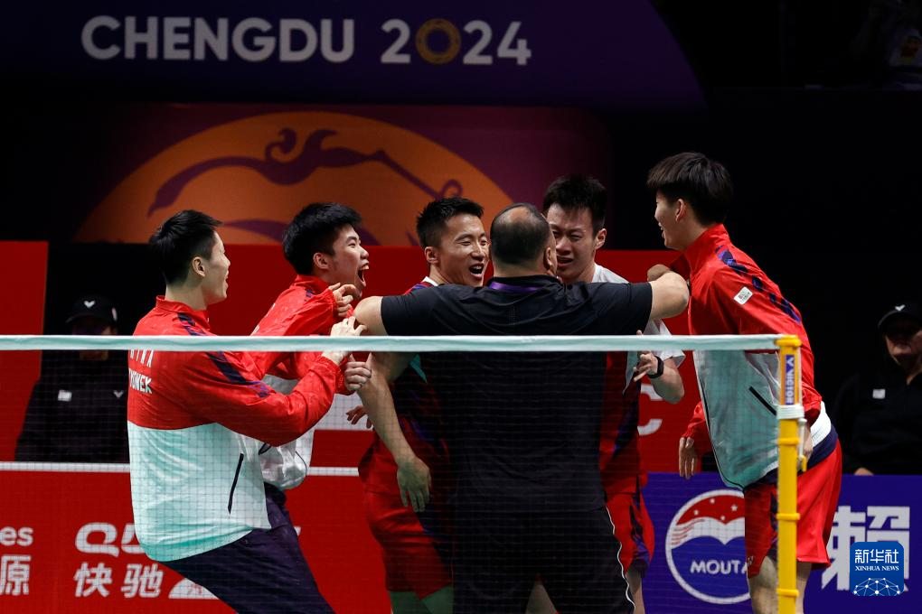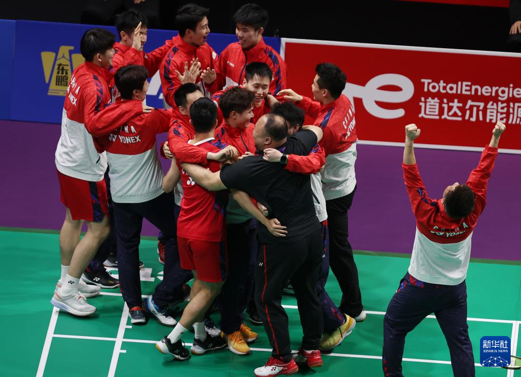 当日,在四川成都举行的2024年汤姆斯杯羽毛球团体赛决赛中,中国队3比1战胜印度尼西亚队,夺得冠军。