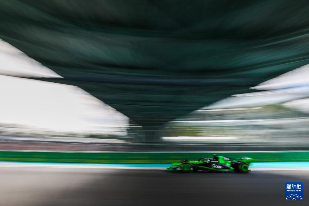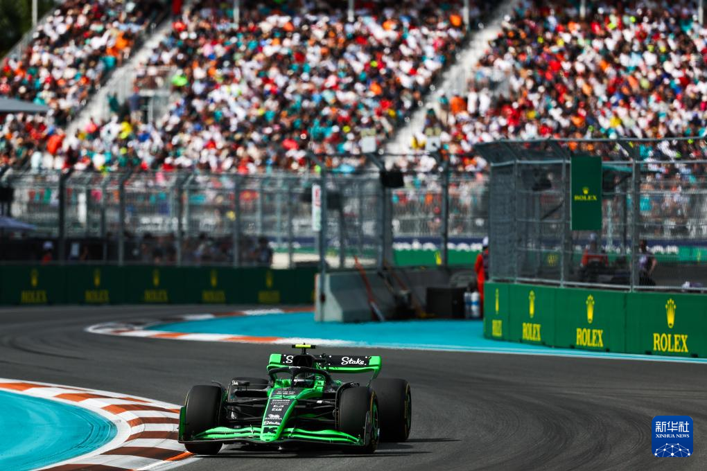 5月5日,索伯车队中国车手周冠宇驾驶赛车在比赛中。他最终获得第14名。新华社发(钱俊 摄)