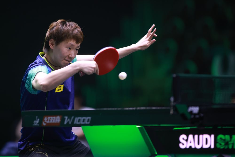5月6日,中国选手王曼昱在比赛中回球,她在女单第二轮比赛中1比3不敌印度选手巴特拉。新华社发(WTT世界乒联供图)