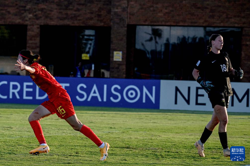 5月7日,中国队球员在比赛中庆祝进球。新华社发(阿贡摄)