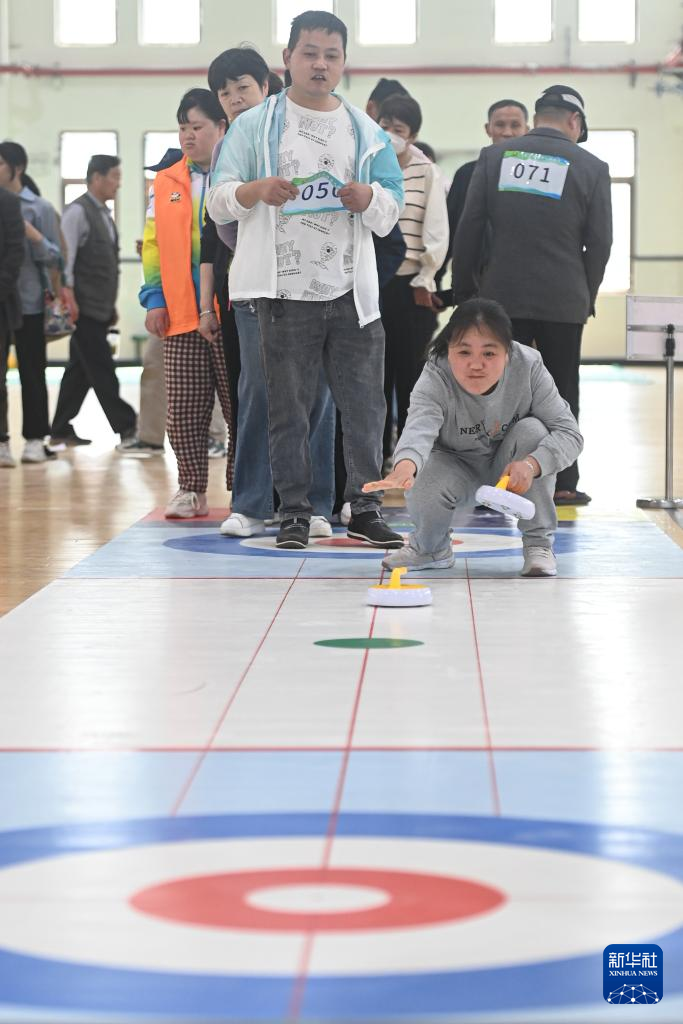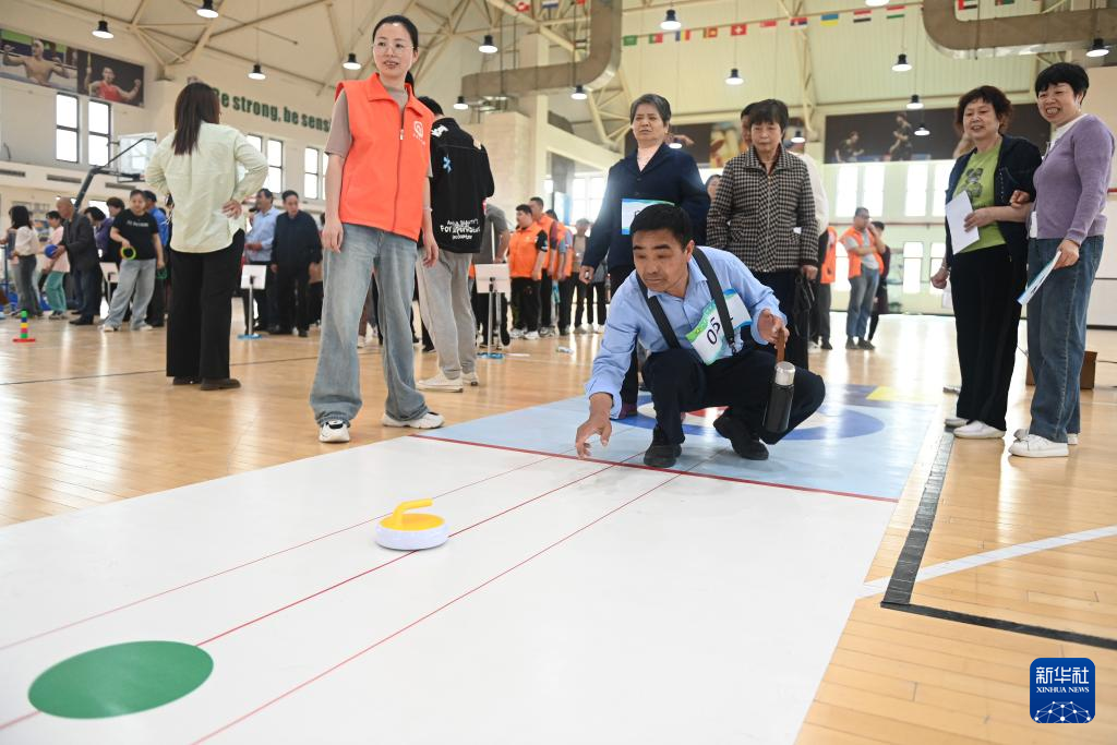 5月8日,一位选手在旱地冰壶比赛中。新华社记者 黄宗治 摄