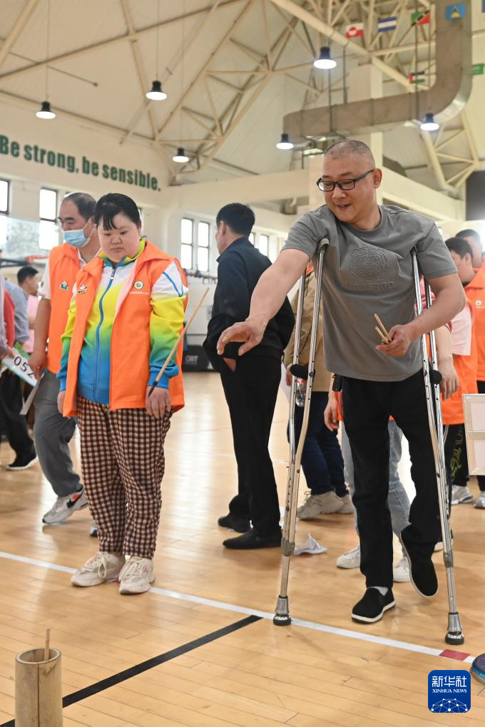 当日,浙江省湖州市吴兴区八里店镇在枫叶国际学校举办残疾人趣味运动会,共设置旱地冰壶、套圈、投壶、保龄球、扔沙包5个项目,95位残疾人选手参与比赛。