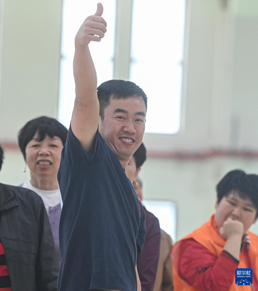 5月8日,来自紫金桥村的村民吴云峰在趣味运动会上庆祝“保龄球”项目得分。新华社记者 黄宗治 摄
