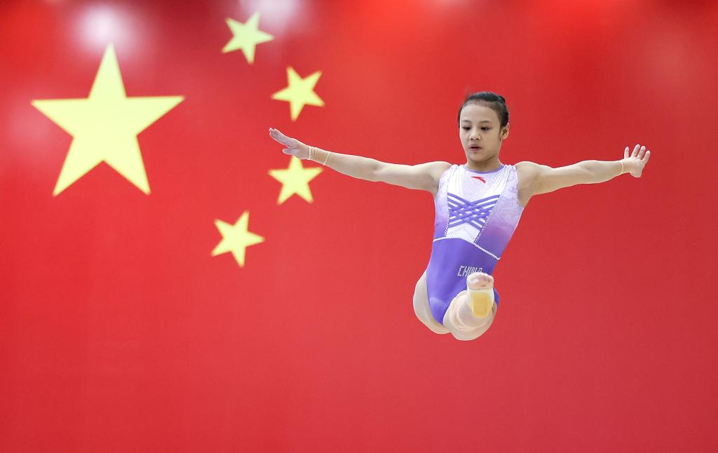 5月8日,中国体操队队员邱祺缘在训练中。新华社记者 曹灿 摄