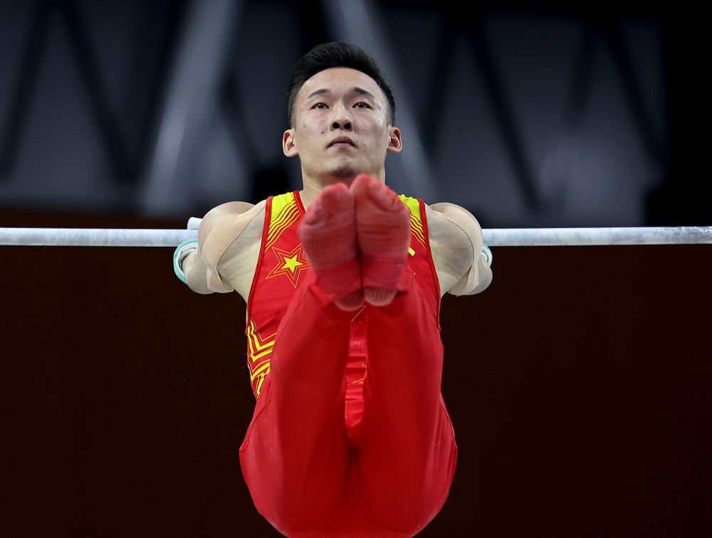 4月29日,肖若腾在2024年全国体操锦标赛暨巴黎奥运会选拔赛男子单杠比赛中。新华社记者 曹灿 摄