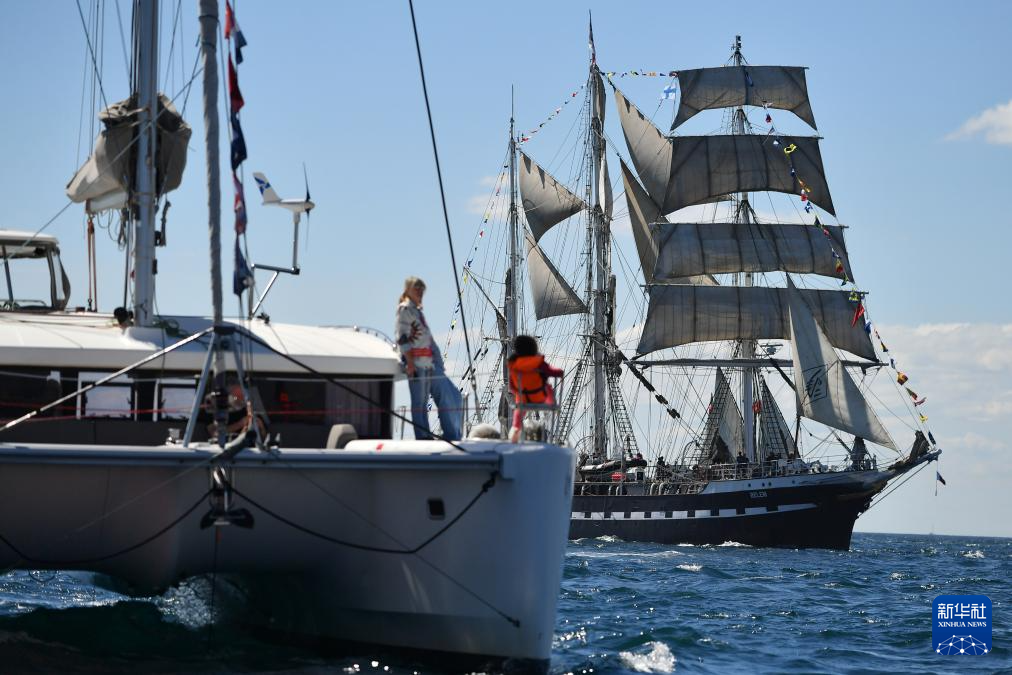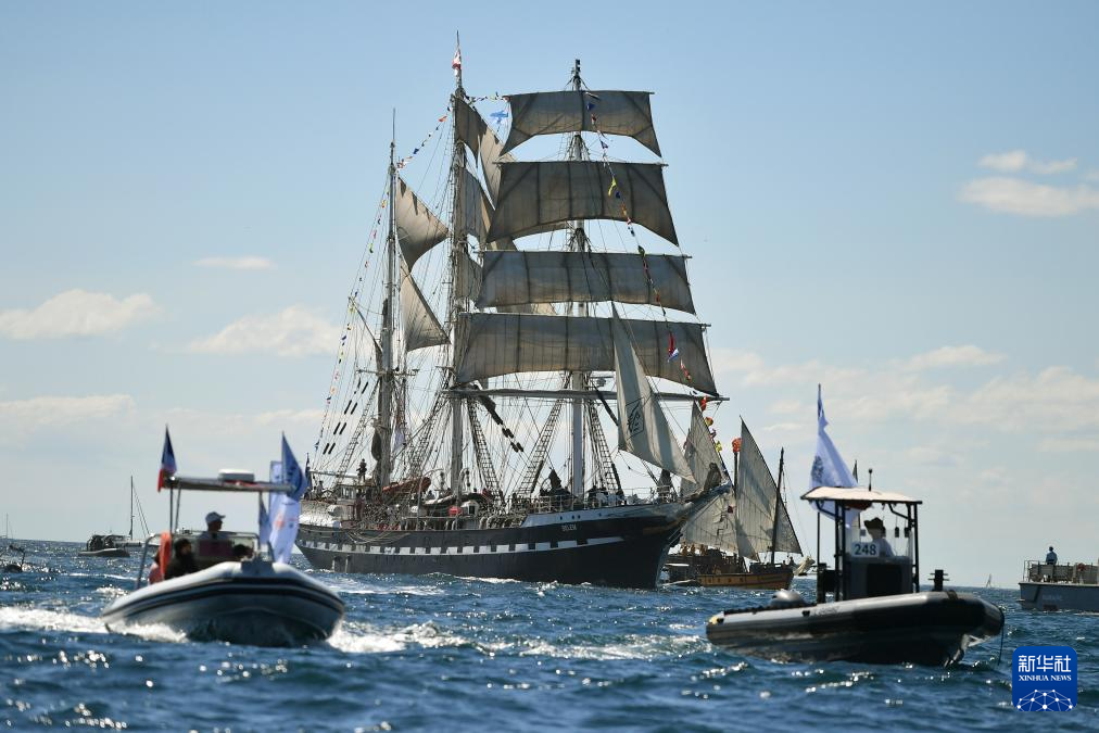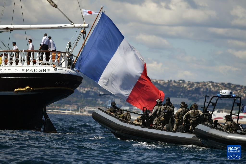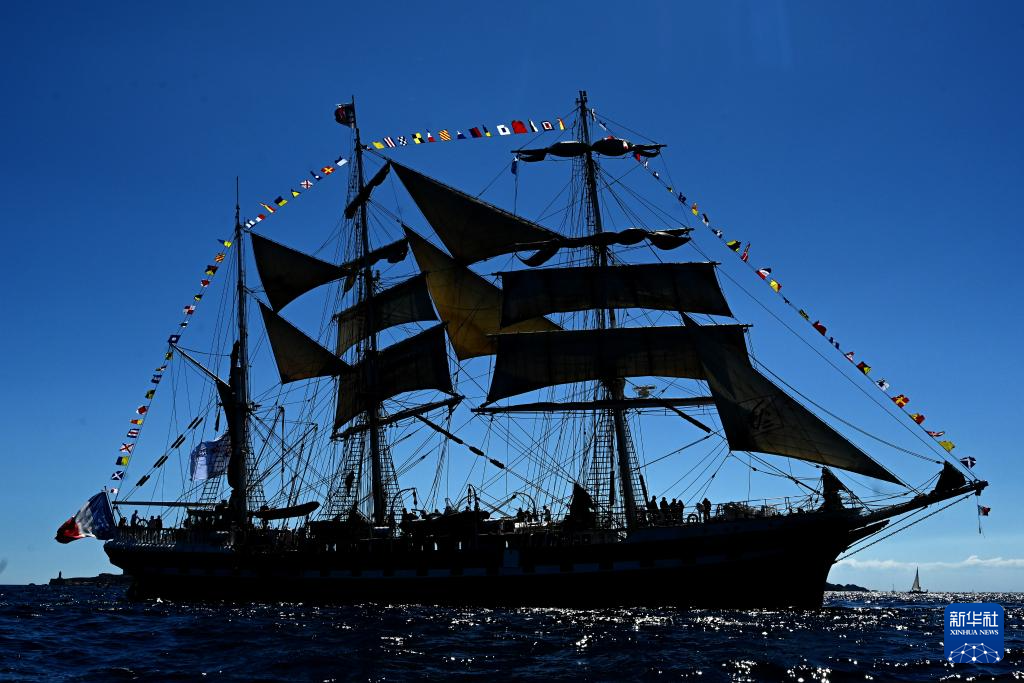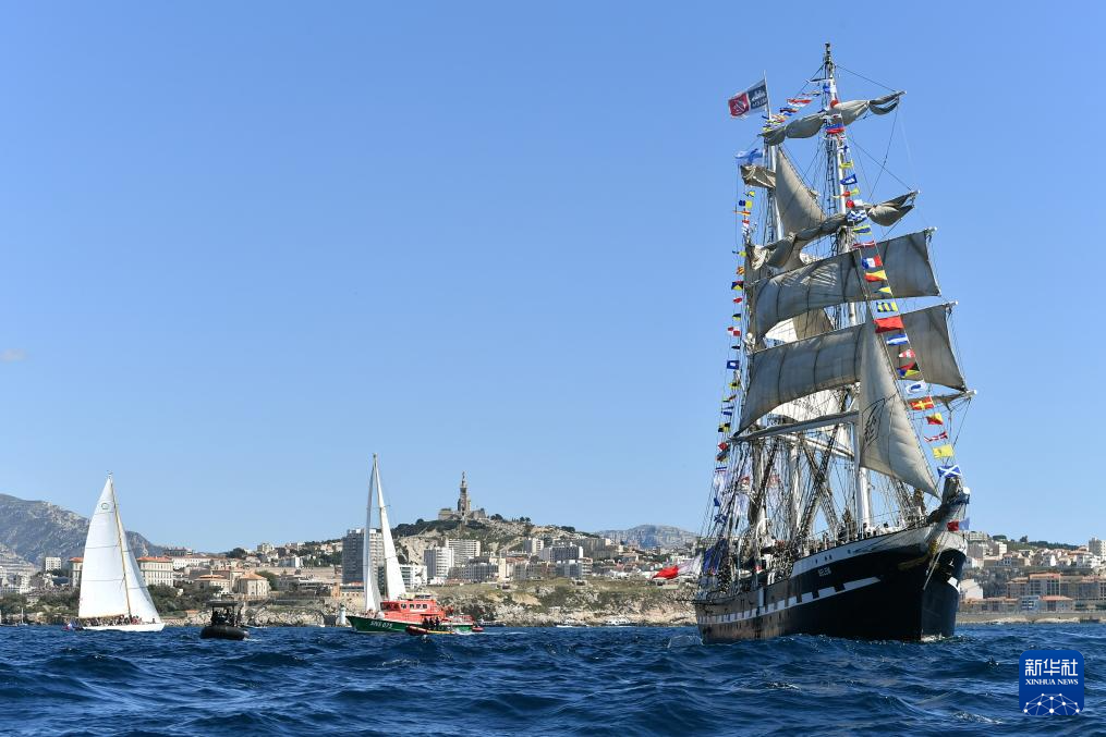 当地时间5月8日,搭载巴黎奥运会火种的“贝勒姆”号帆船抵达马赛。新华社发(朱利安·马蒂亚摄)