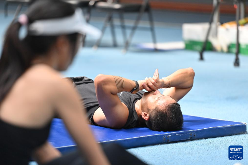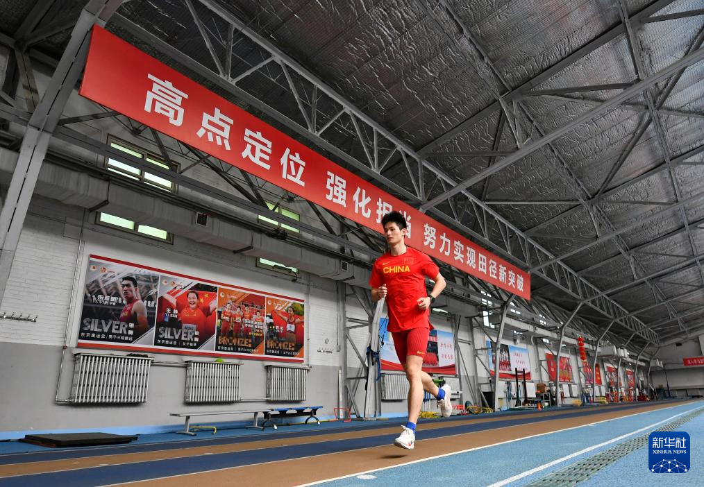 当日,中国田径队在北京国家体育总局训练局进行训练。