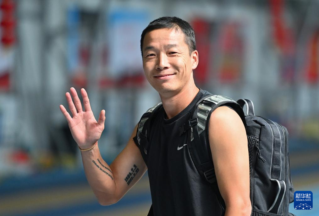 5月9日,中国田径队队员吴智强来到训练场地。新华社记者 宋彦桦 摄