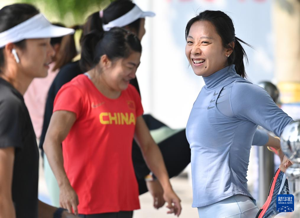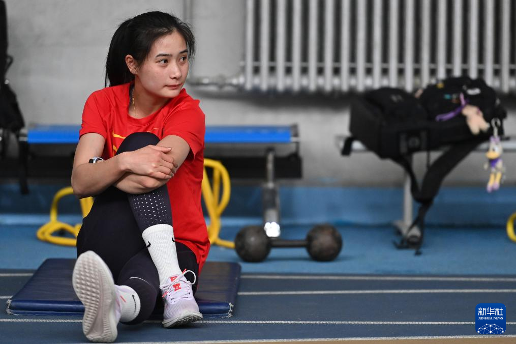5月9日,中国田径队队员黄紫婷在训练前热身。新华社记者 宋彦桦 摄