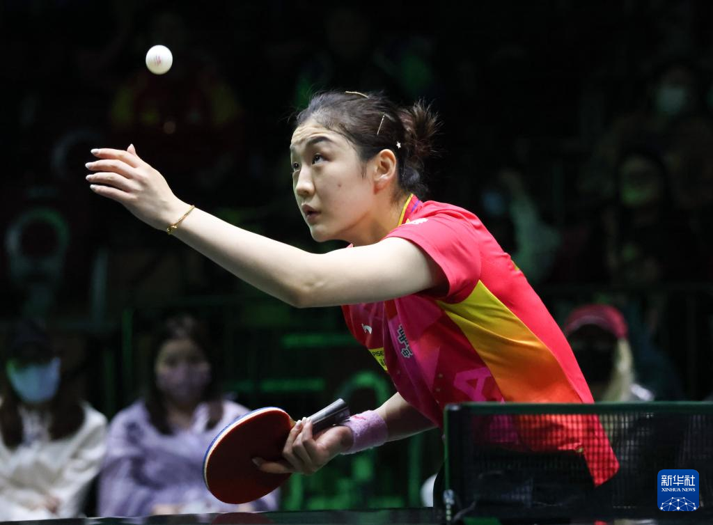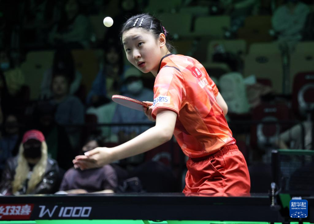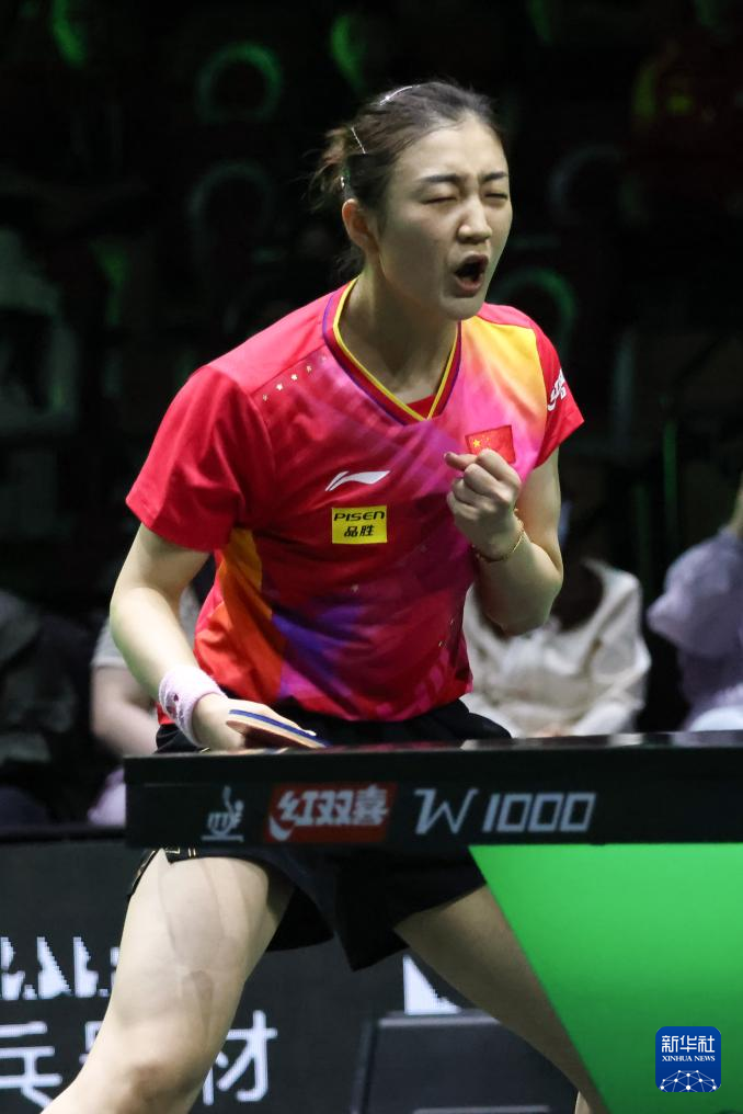 当日,在沙特吉达阿卜杜拉国王体育城举行的WTT沙特大满贯女子单打四分之一决赛中,中国选手陈梦4比1战胜日本选手张本美和,晋级半决赛。