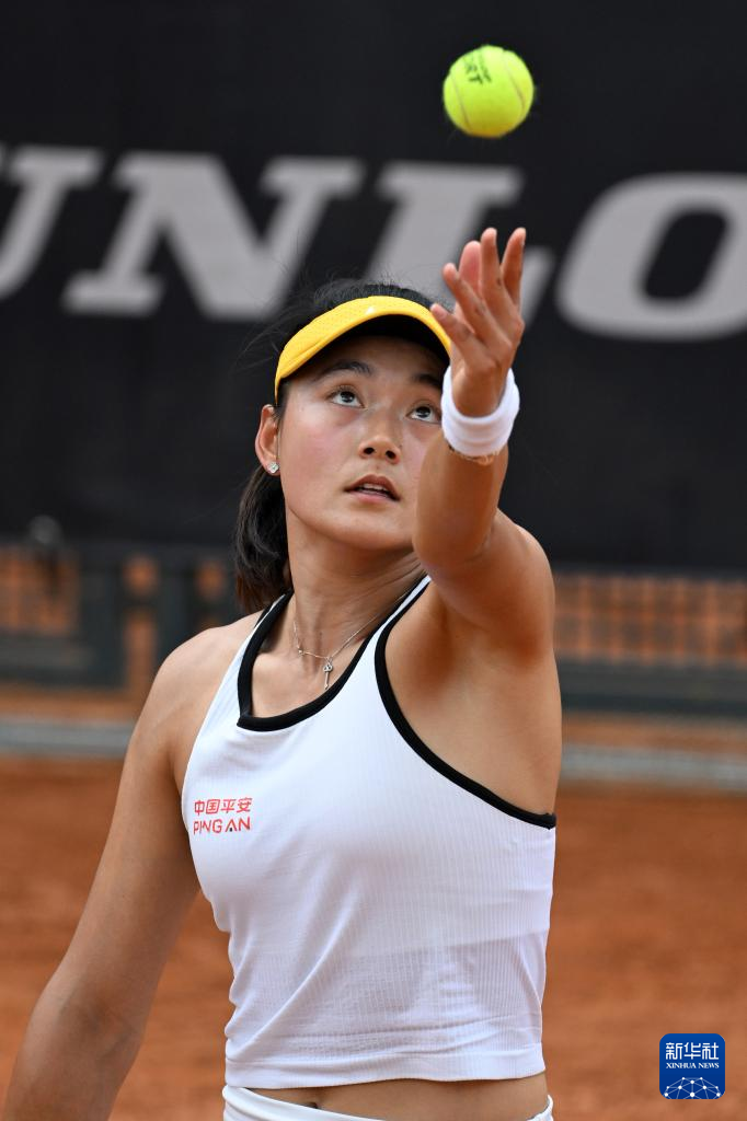 5月9日,王雅繁在比赛中发球。新华社发(阿尔贝托·林格利亚摄)
