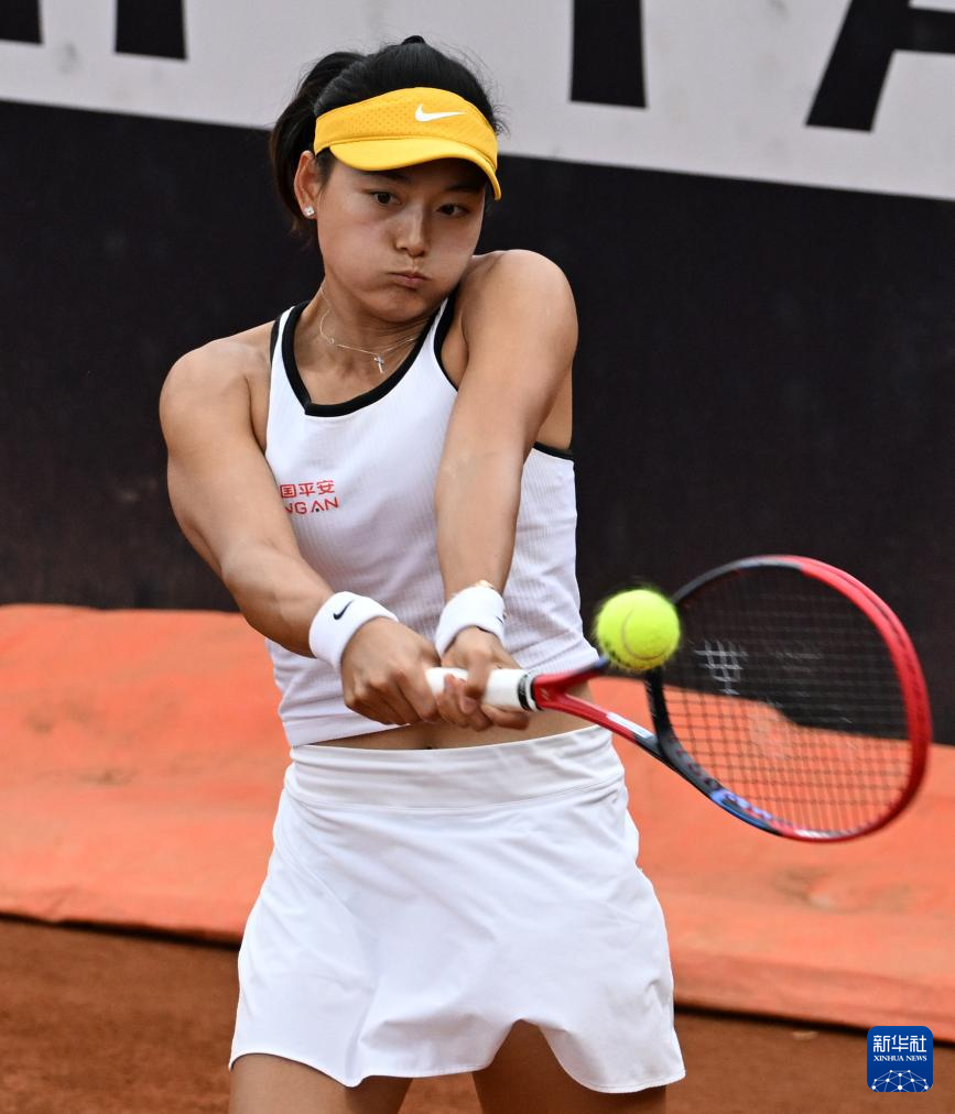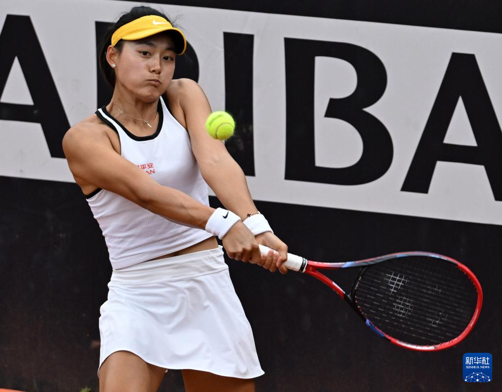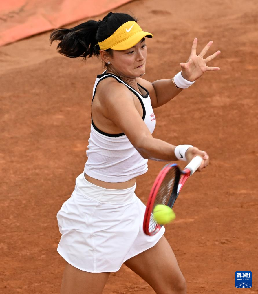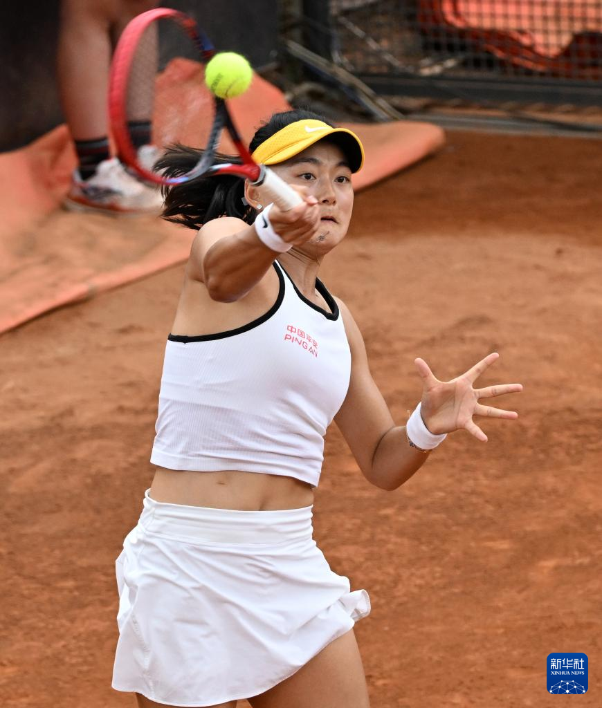5月9日,王雅繁在比赛中回球。新华社发(阿尔贝托·林格利亚摄)