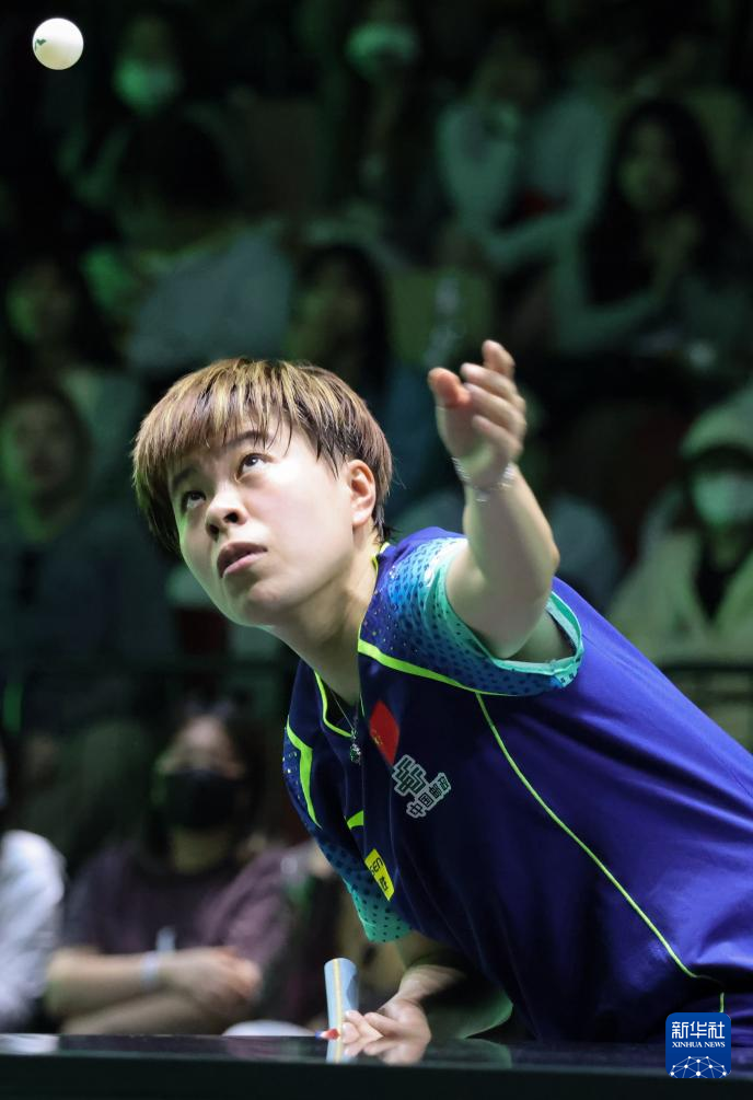 5月9日,伊藤美诚在比赛中发球。新华社记者 王海洲 摄