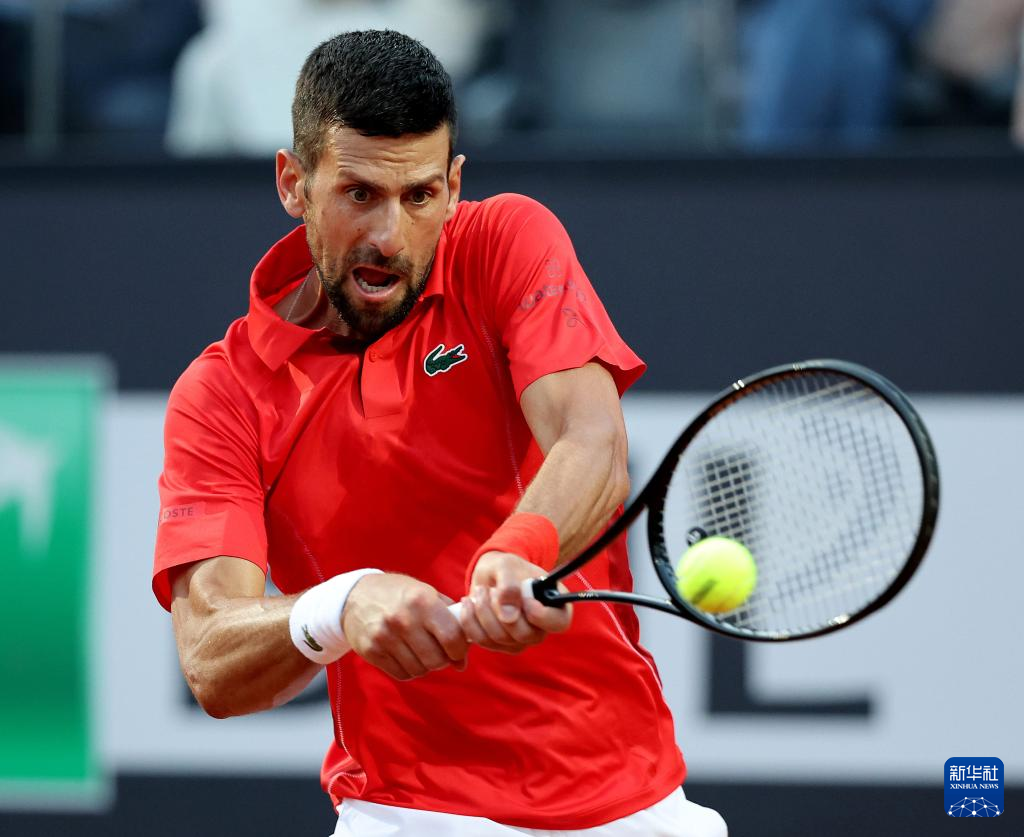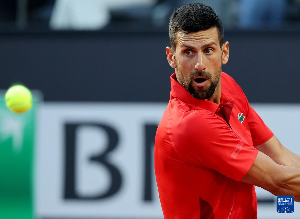 5月10日,焦科维奇在比赛中回球。新华社发(阿尔贝托·林格利亚摄)