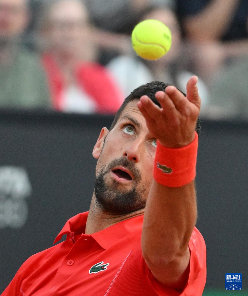 5月10日,焦科维奇在比赛中发球。新华社发(阿尔贝托·林格利亚摄)