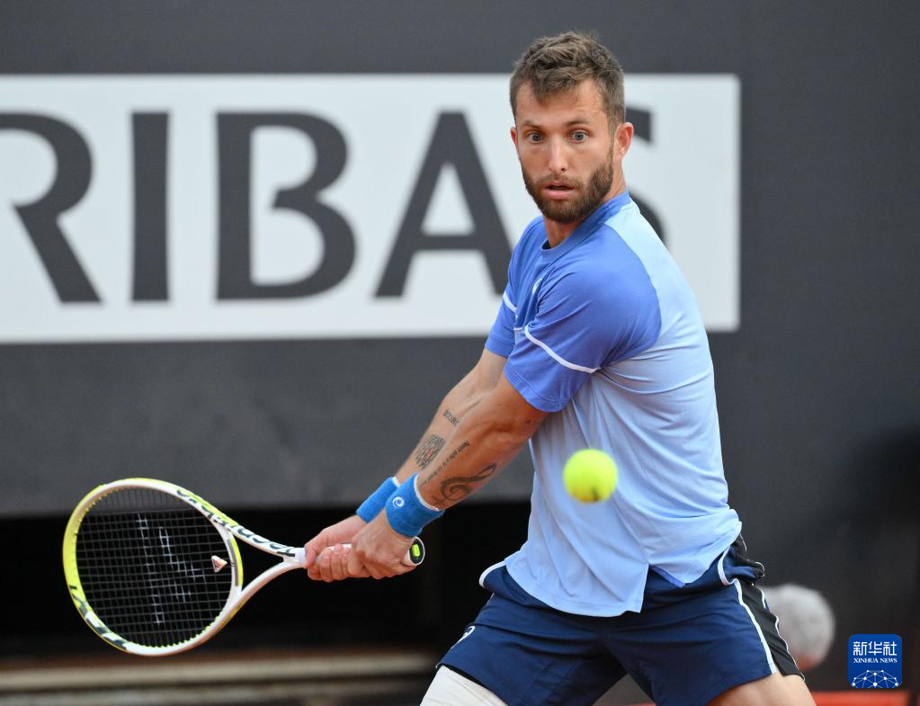 5月10日,穆泰在比赛中回球。新华社发(阿尔贝托·林格利亚摄)