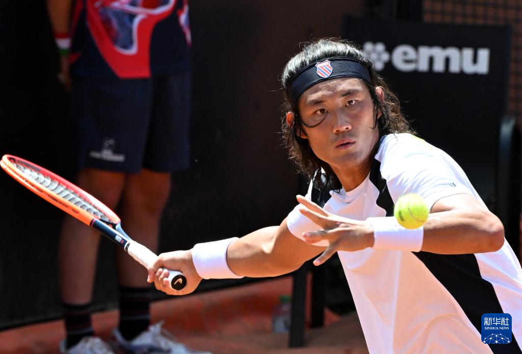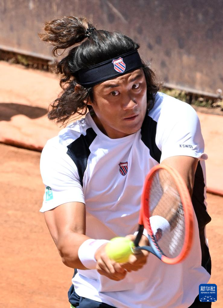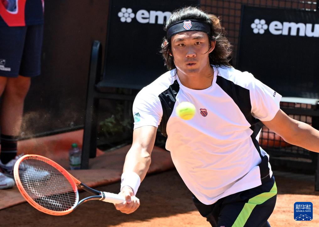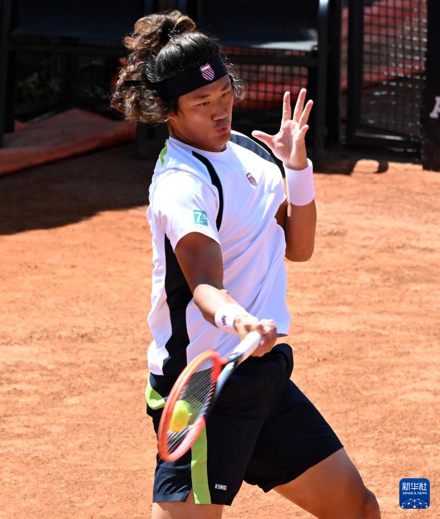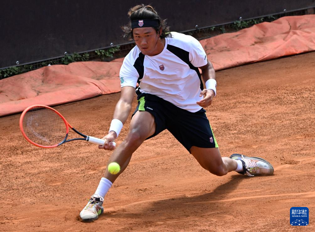 5月10日,张之臻在比赛中回球。新华社发(阿尔贝托·林格利亚摄)