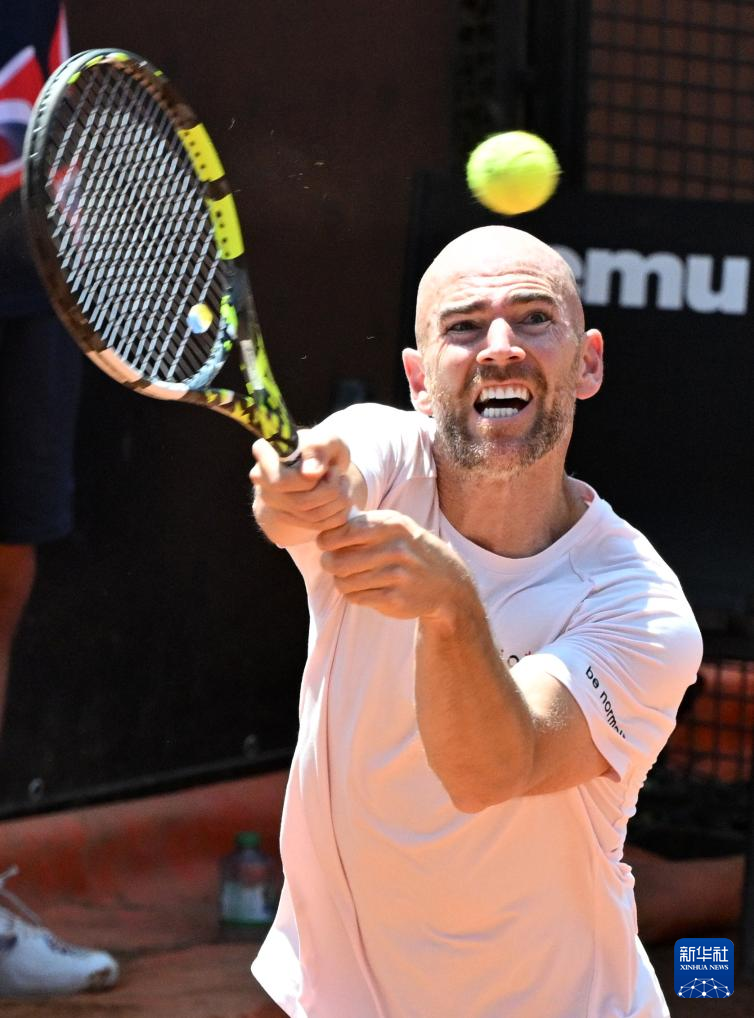 5月10日,曼纳里诺在比赛中回球。新华社发(阿尔贝托·林格利亚摄)