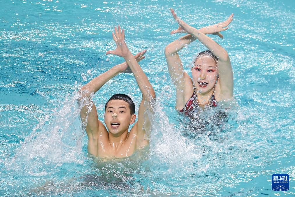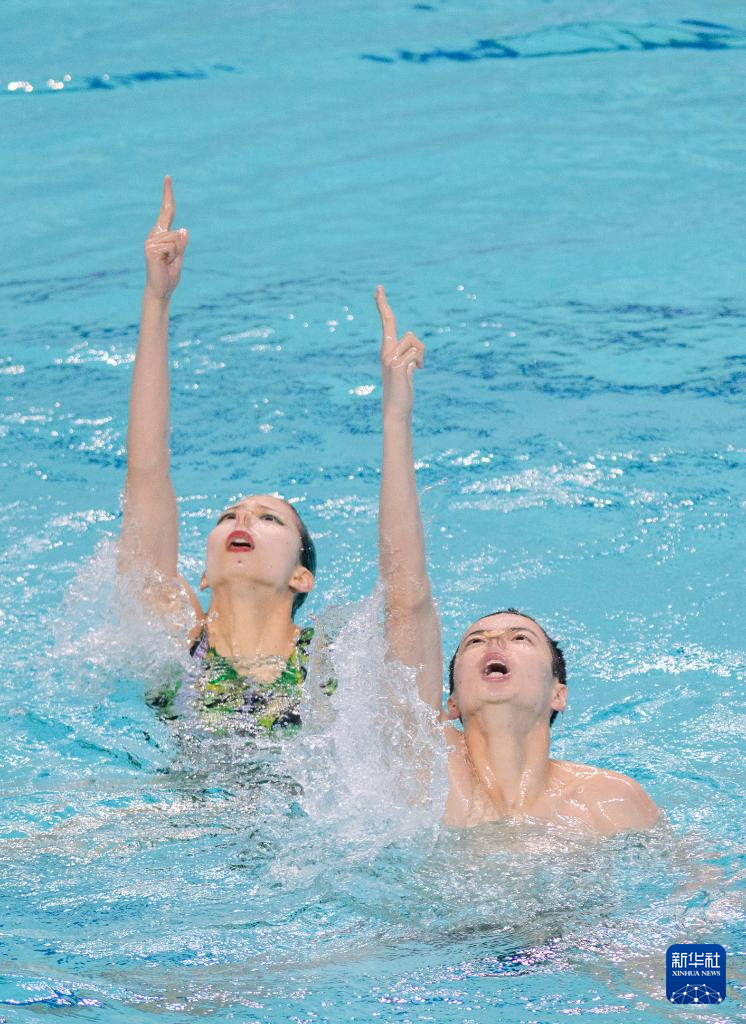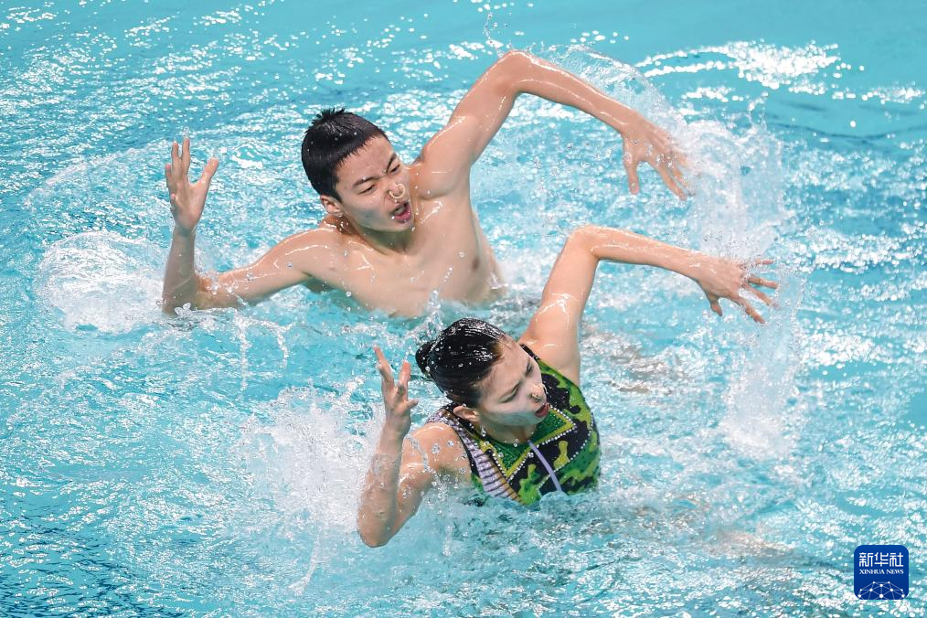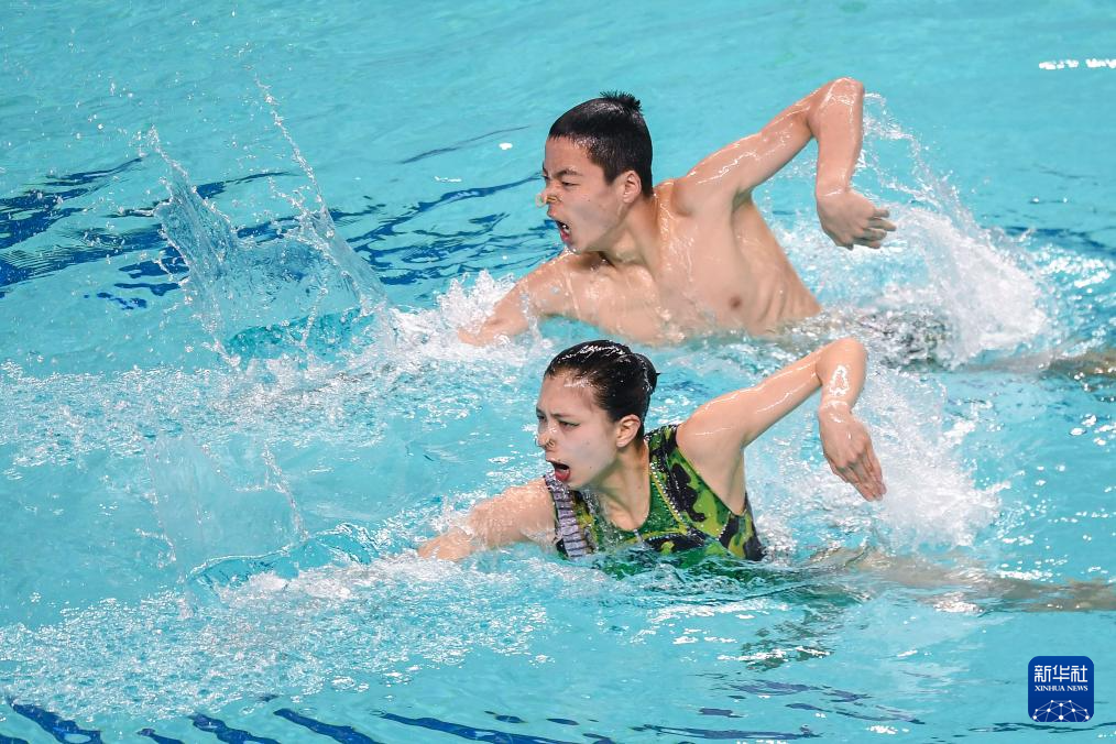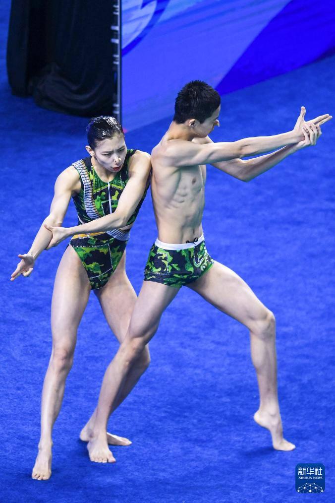5月10日,四川洲克队陈修平(左)/徐可心在比赛中。他们最终以206.6850分的成绩获得亚军。新华社记者 杜子璇 摄