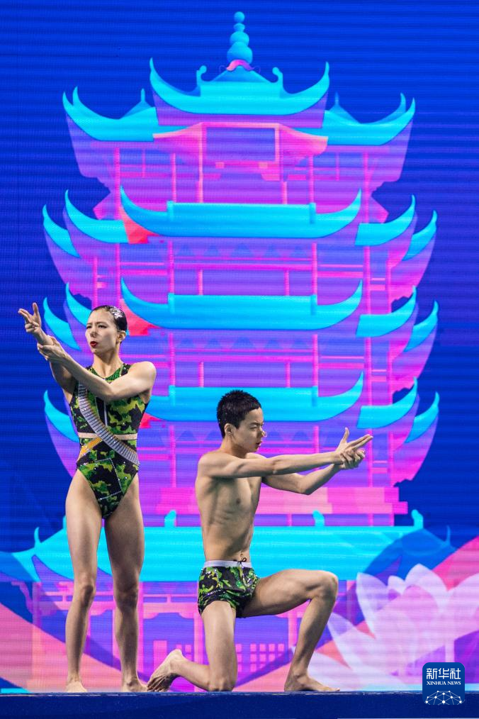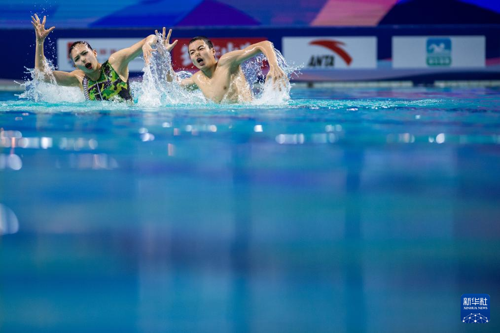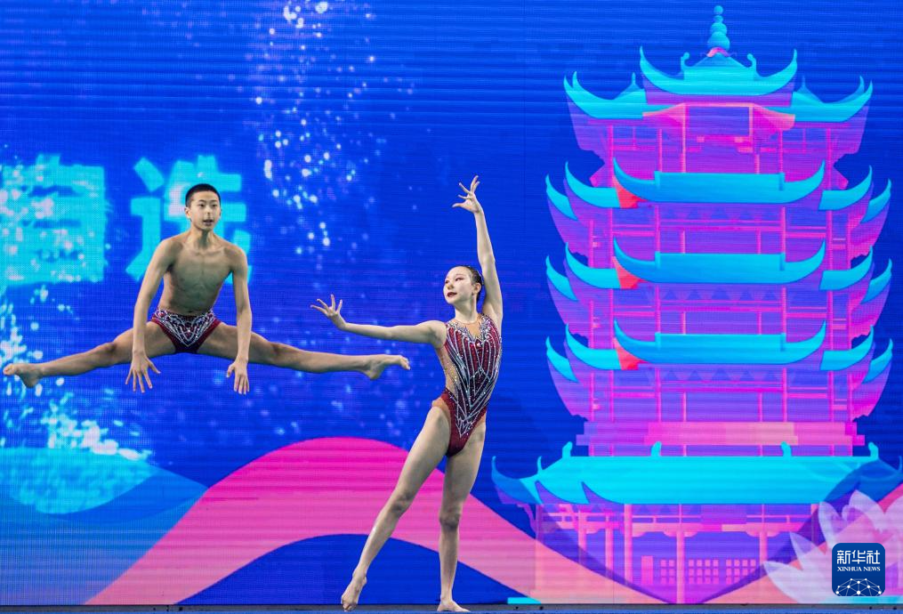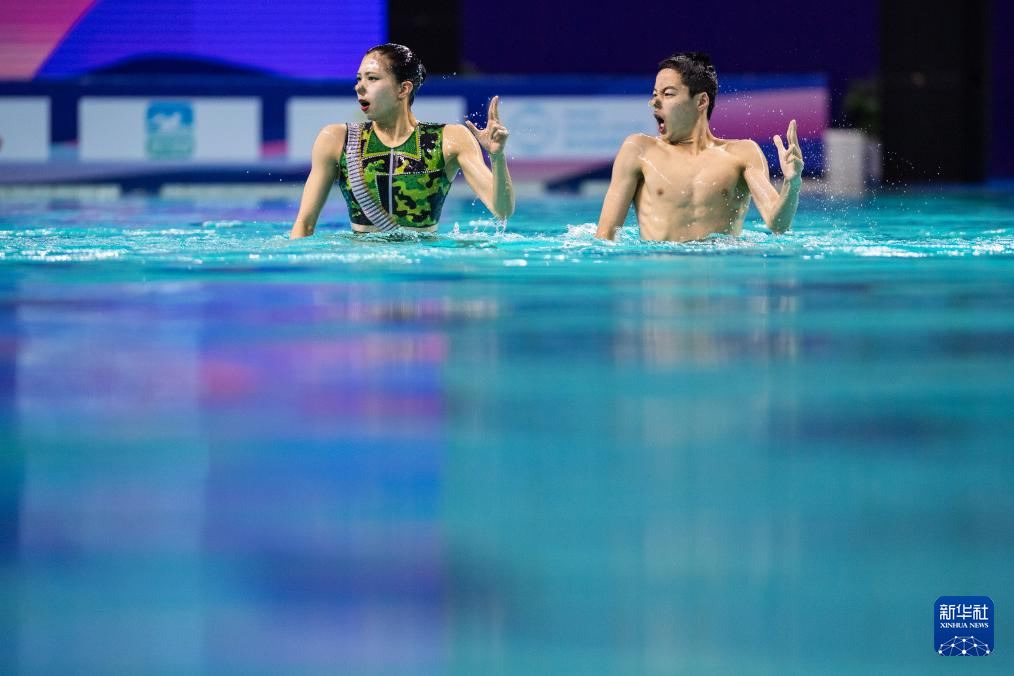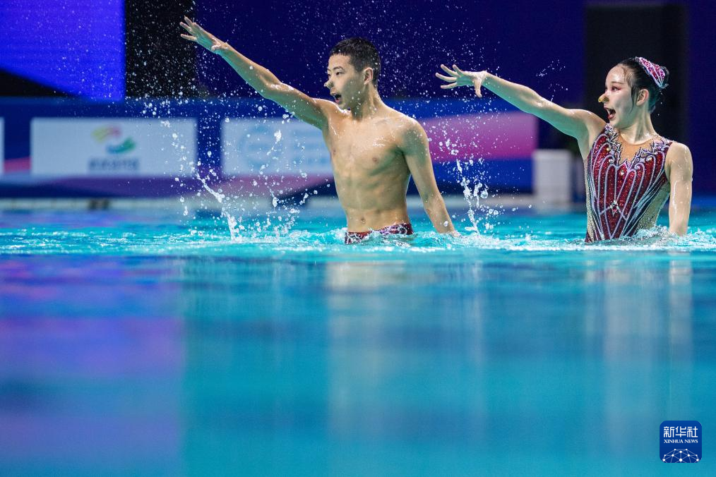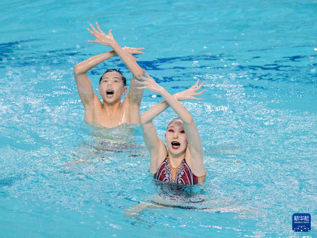 5月10日,四川洲克队陈修平(左)/徐可心在比赛中。他们最终以206.6850分的成绩获得亚军。新华社记者 杜子璇 摄