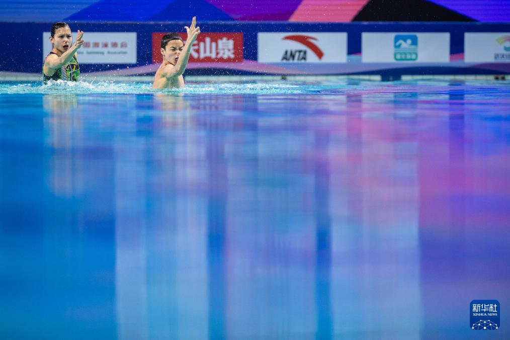 5月10日,四川洲克队陈修平(左)/徐可心在比赛中。他们最终以206.6850分的成绩获得亚军。新华社记者 胡竞文 摄