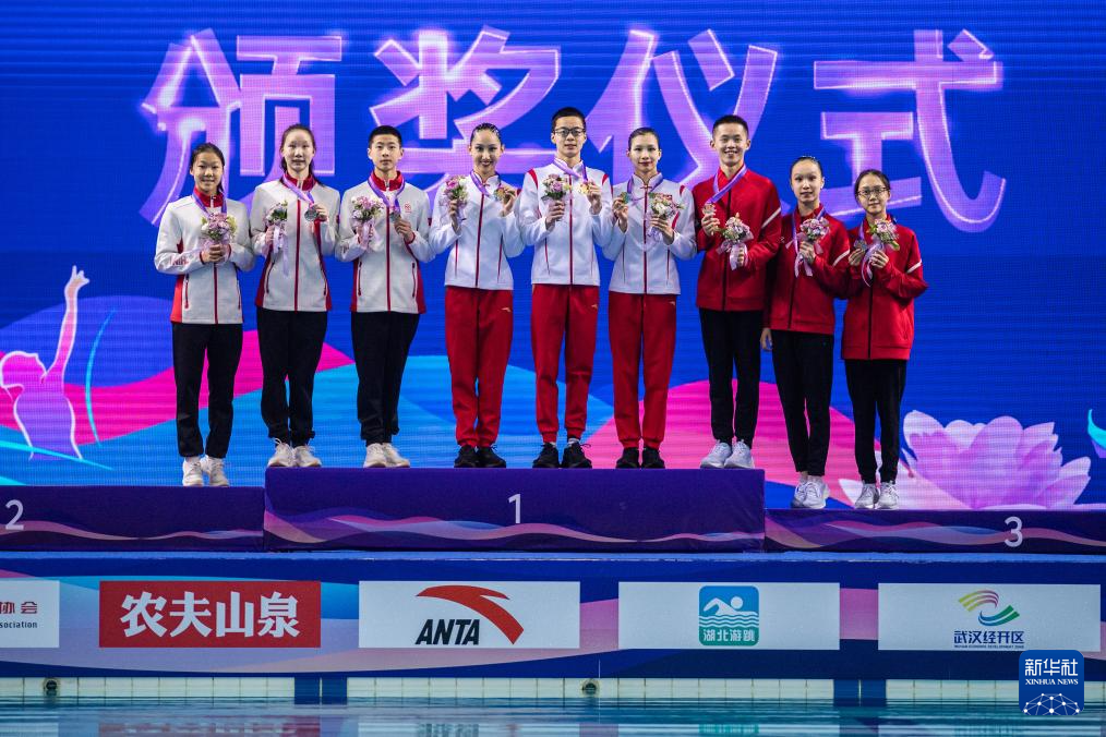 当日,在2024年全国花样游泳冠军赛混双技术自选比赛中,上海安踏队裘心怡/王赵来/樊珺(替补)以213.4433分的成绩夺得冠军。