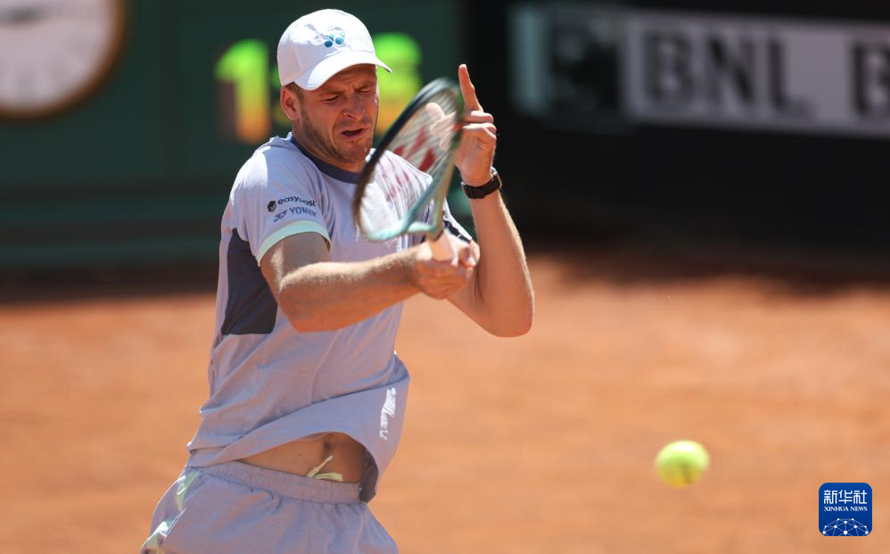 5月11日,胡尔卡奇在比赛中回球。新华社记者 李京 摄