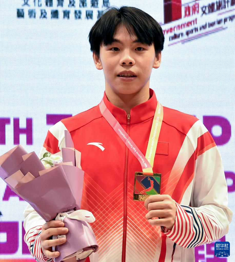 5月12日,中国运动员李宇名在颁奖台上。新华社记者 卢炳辉 摄