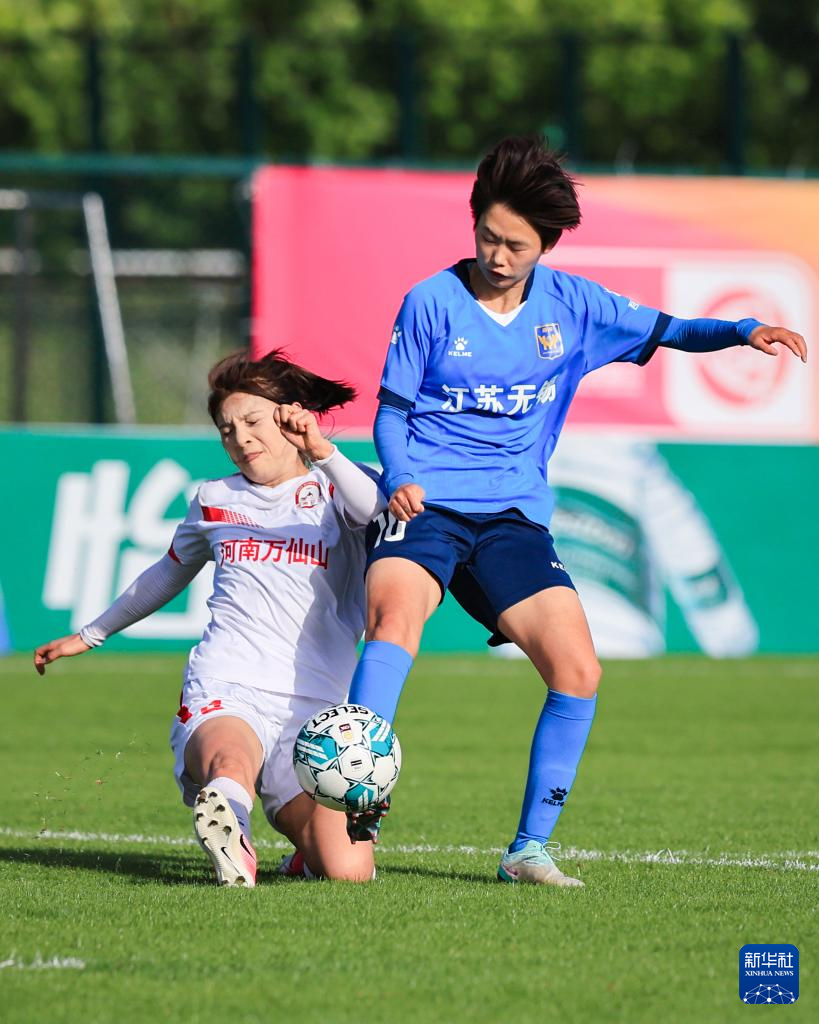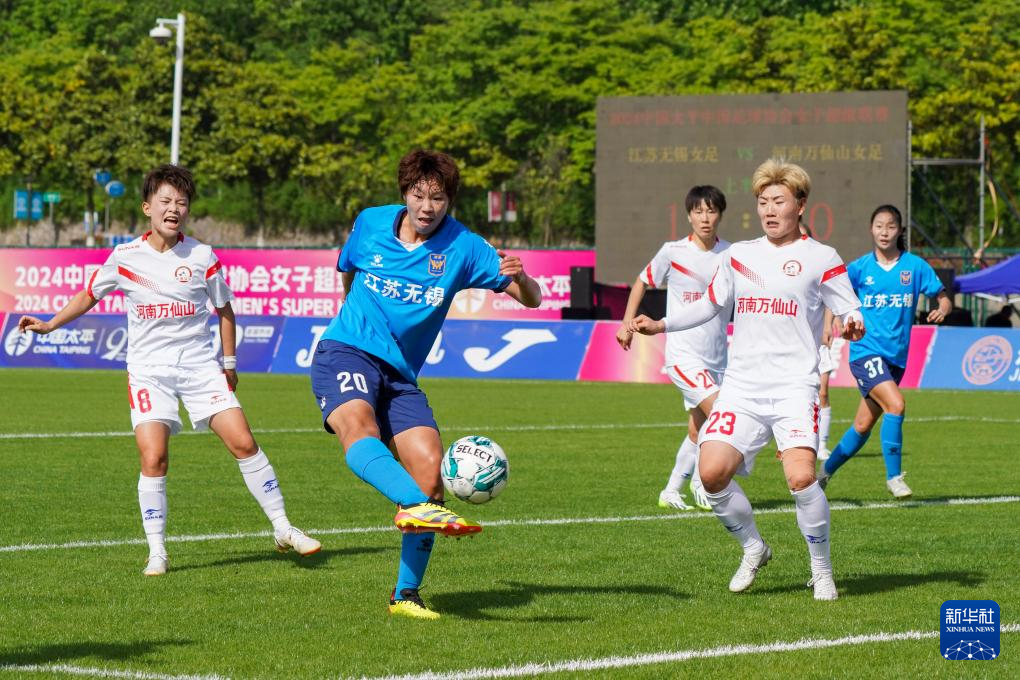 当日,在江苏南京举行的2024年中国足球协会女子超级联赛第七轮比赛中,江苏无锡队主场3比0战胜河南万仙山队。