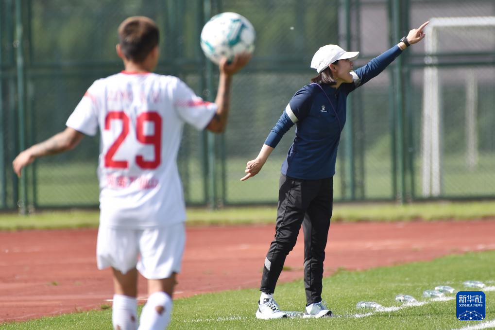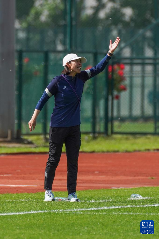 5月12日,江苏无锡队主教练陈婉婷在场边观战。新华社发(杜懿摄)